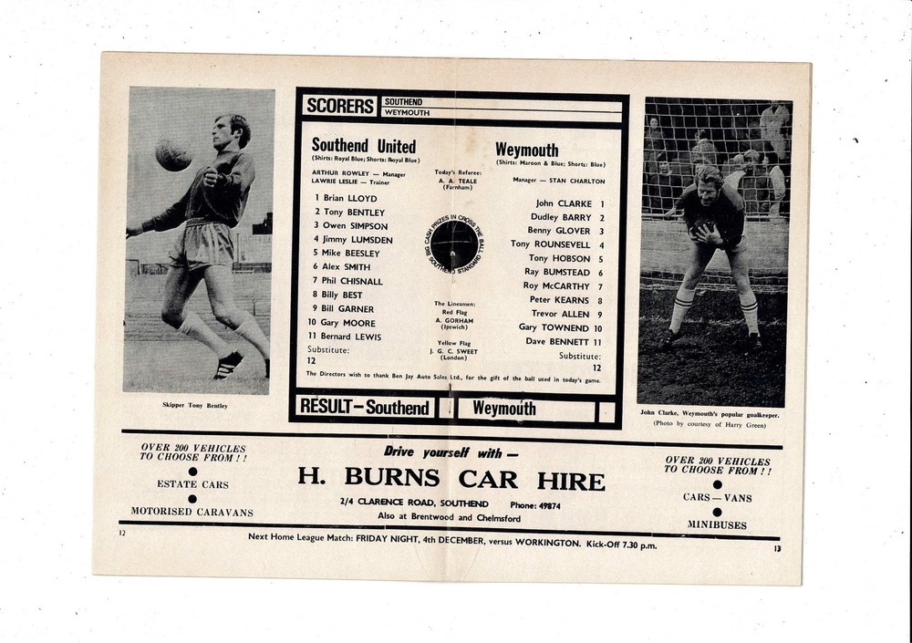Southend United v Weymouth FA Cup Football Programme 1970/71