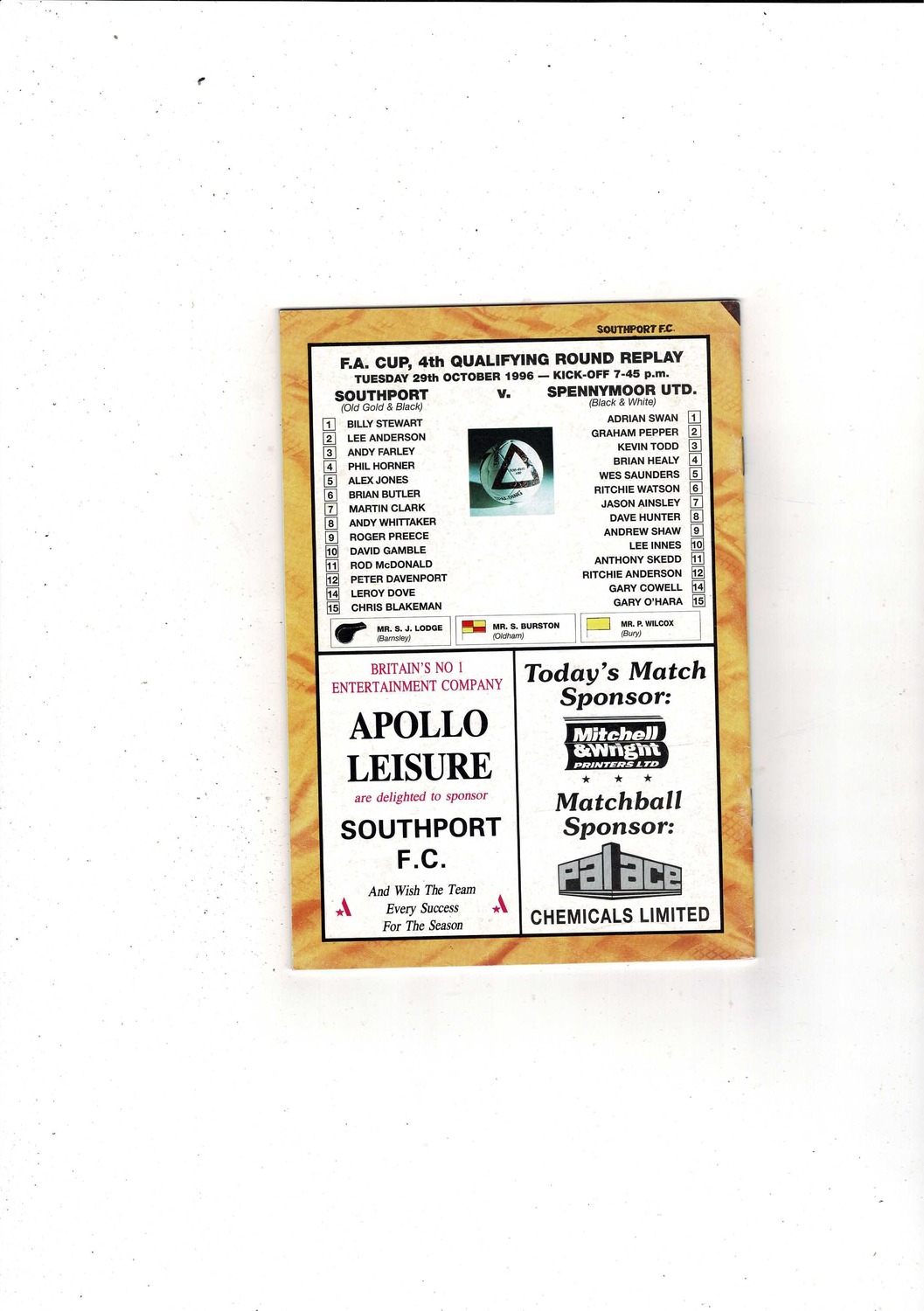 Southport v Spennymoor United Replay FA Cup Football Programme 1996/97