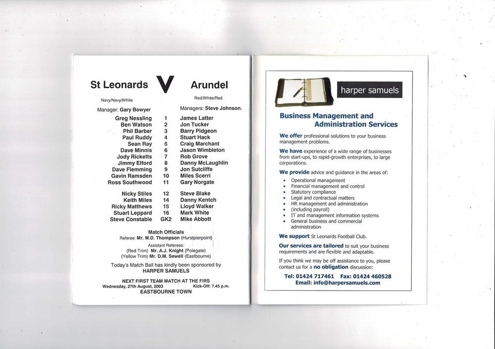 St. Leonards v Arundel FA Cup Football Programme 2003/04