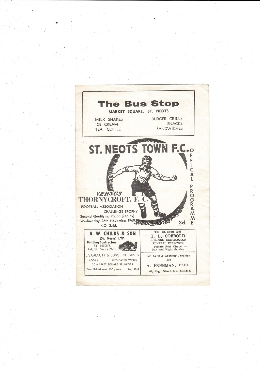 St. Neots Town v Thornycroft FA Cup Replay Football Programme 1969/70