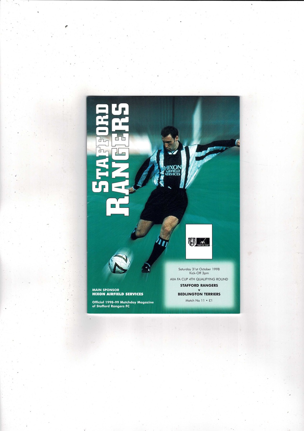 Stafford Rangers v Bedlington Terriers FA Cup Football Programme 1998/99