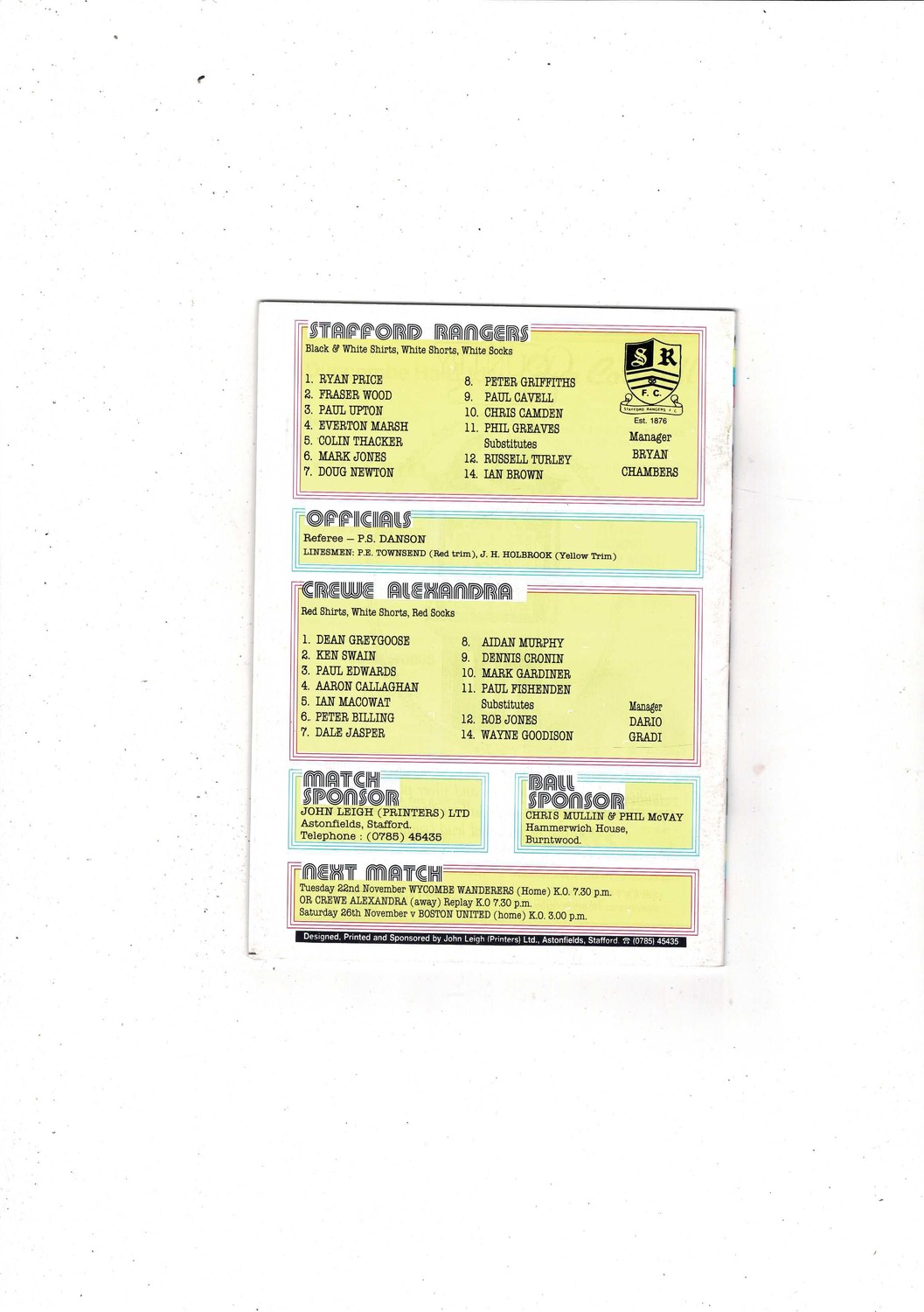 Stafford Rangers v Crewe Alexandra FA Cup Football Programme 1988/89