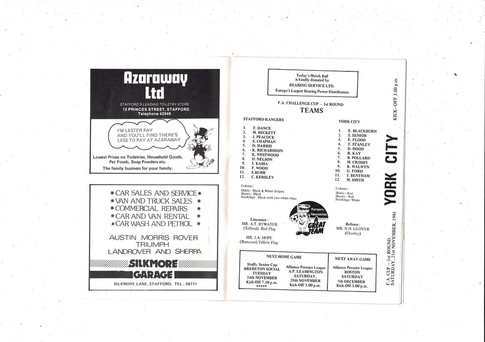 Stafford Rangers v York City FA Cup Football Programme 1981/82