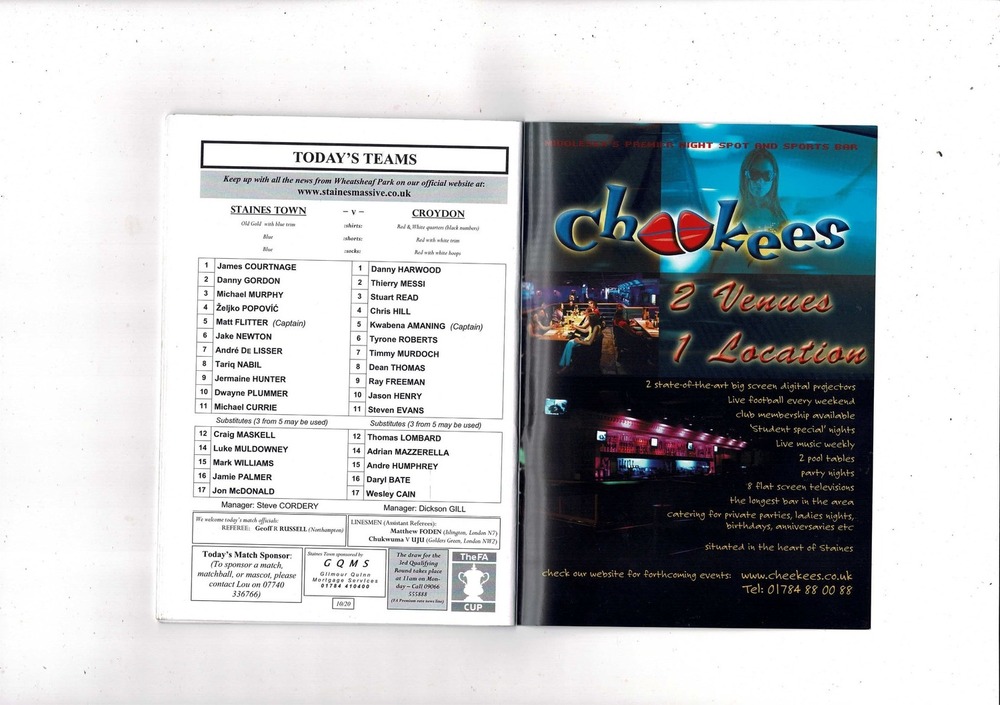 Staines Town v Croydon FA Cup Football Programme 2005/06