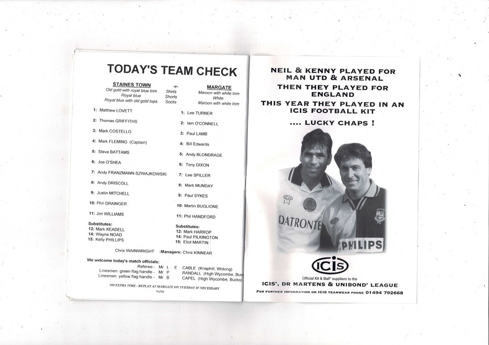 Staines Town v Margate FA Cup Football Programme 1997/98