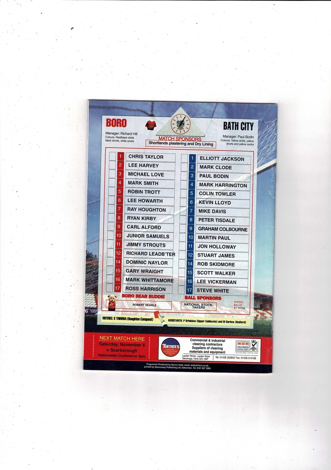 Stevenage Borough v Bath City FA Cup Football Programme 1999/00