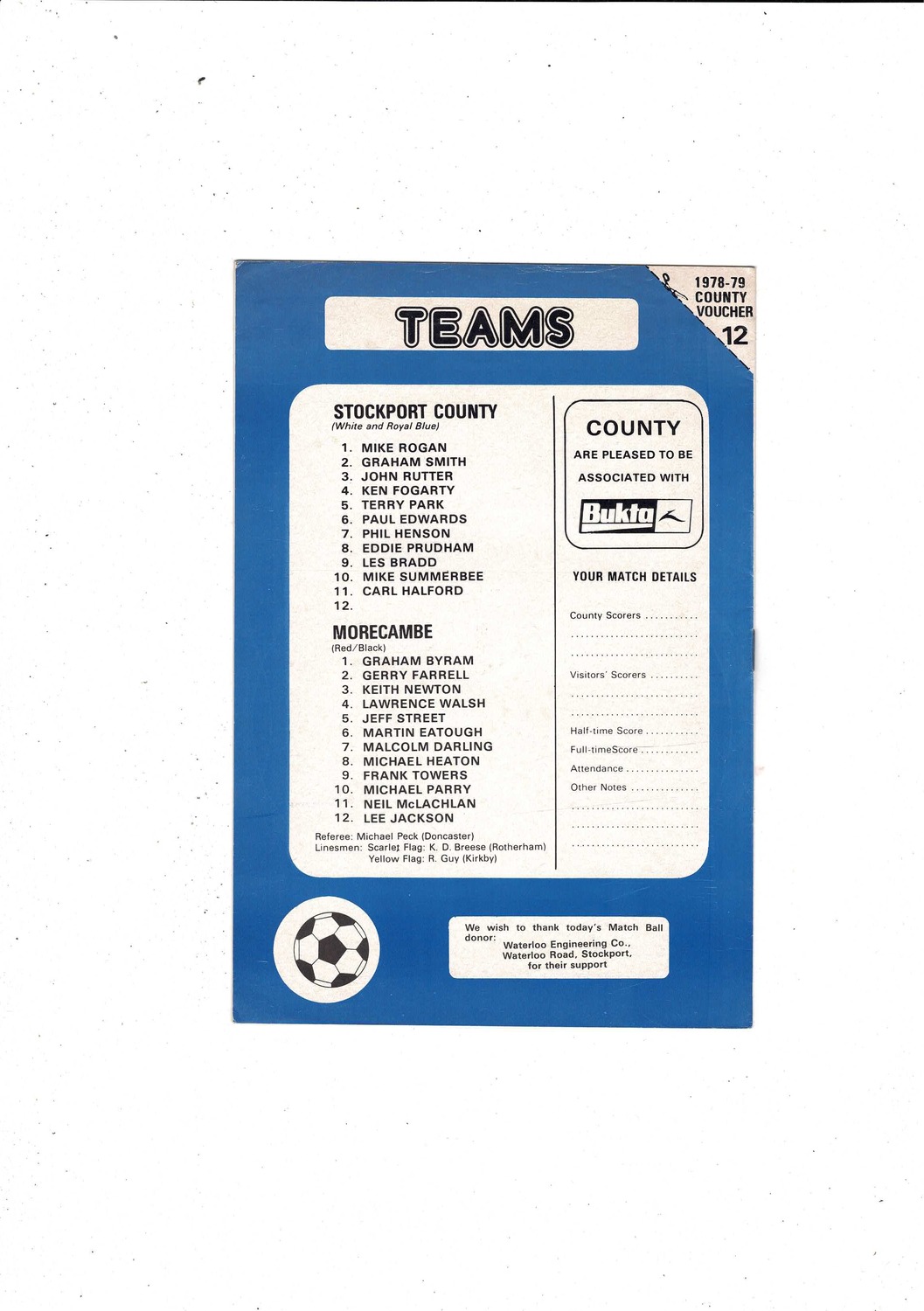 Stockport County v Morecambe FA Cup Football Programme 1978/79