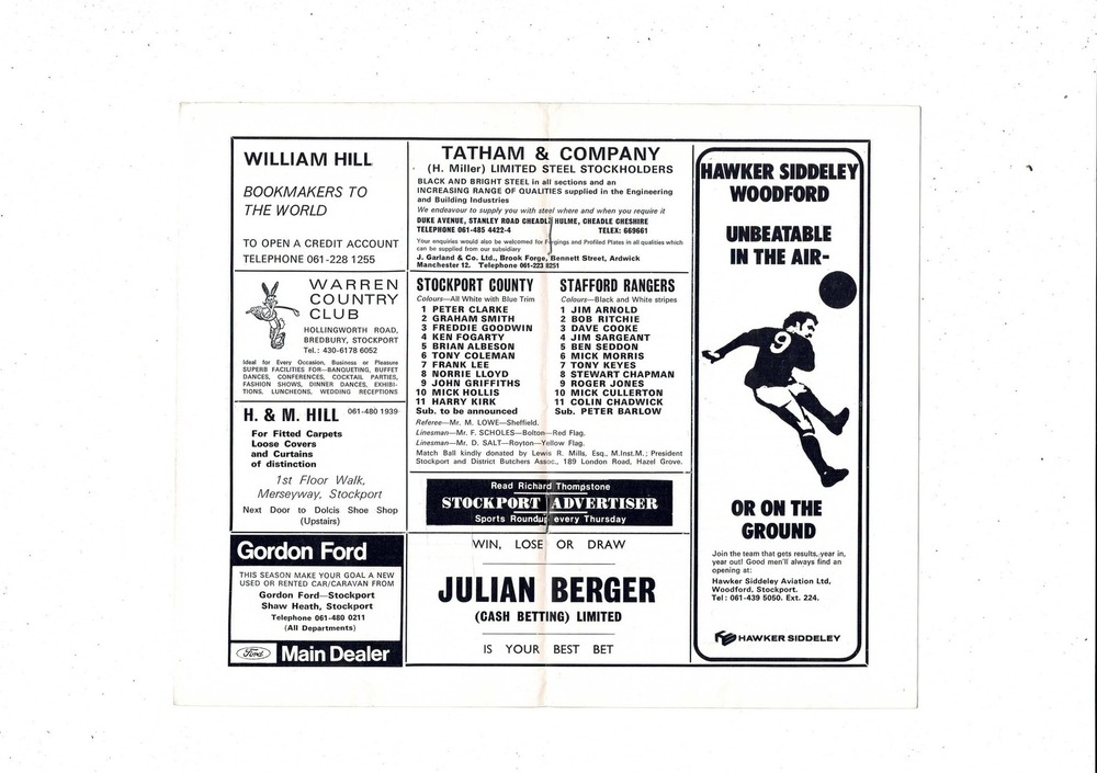 Stockport County v Stafford Rangers FA Cup Football Programme 1974/75