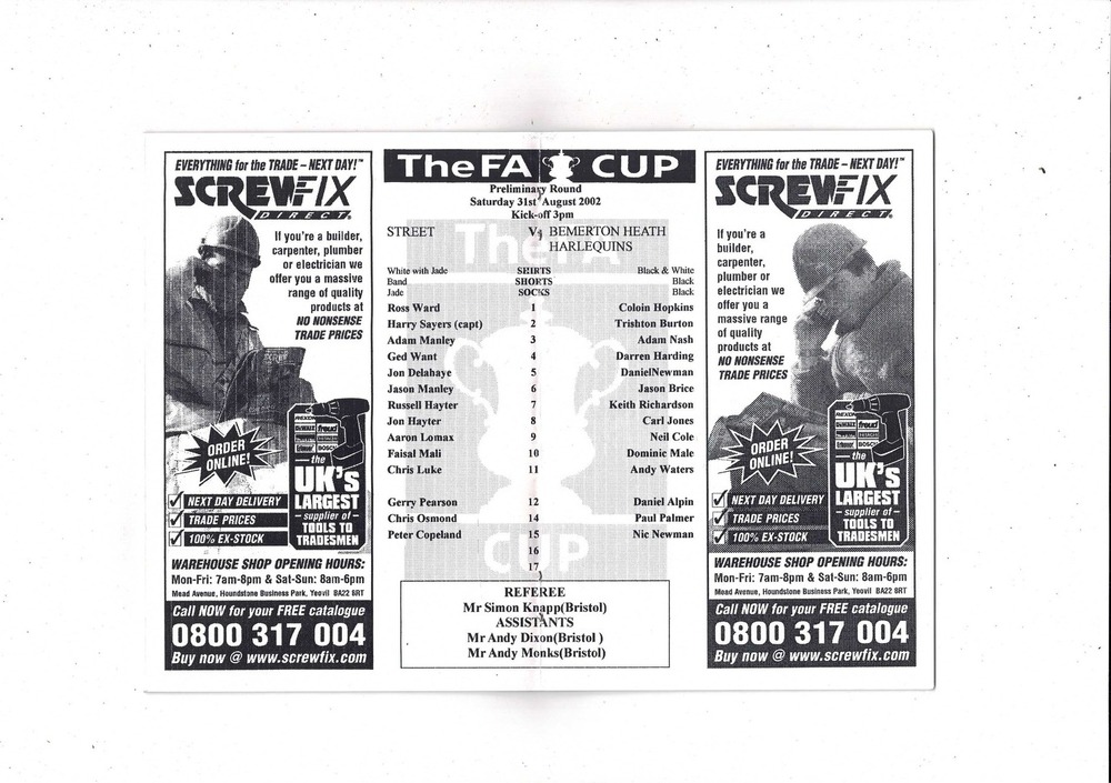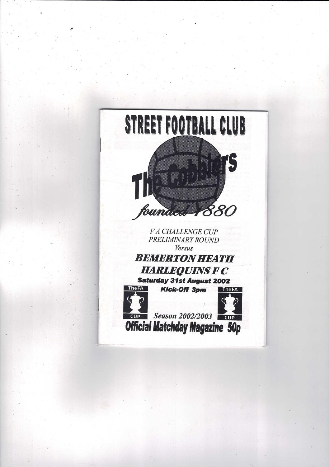 Street v Bemerton Heath Harlequins FA Cup Football Programme 2002/03