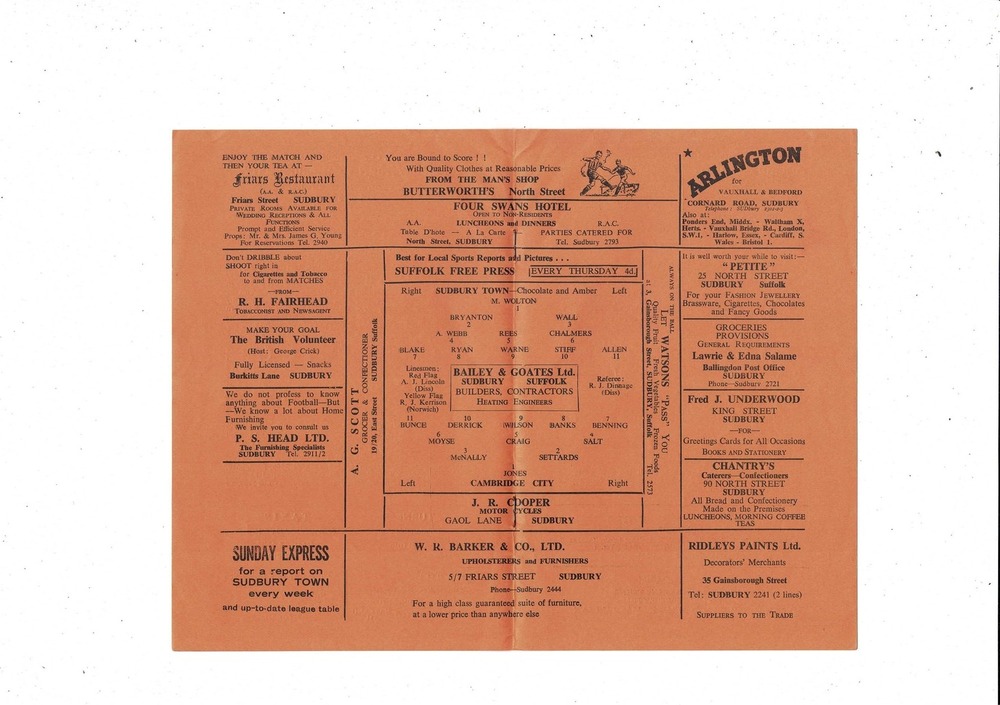 Sudbury Town v Cambridge City FA Cup Football Programme 1963/64