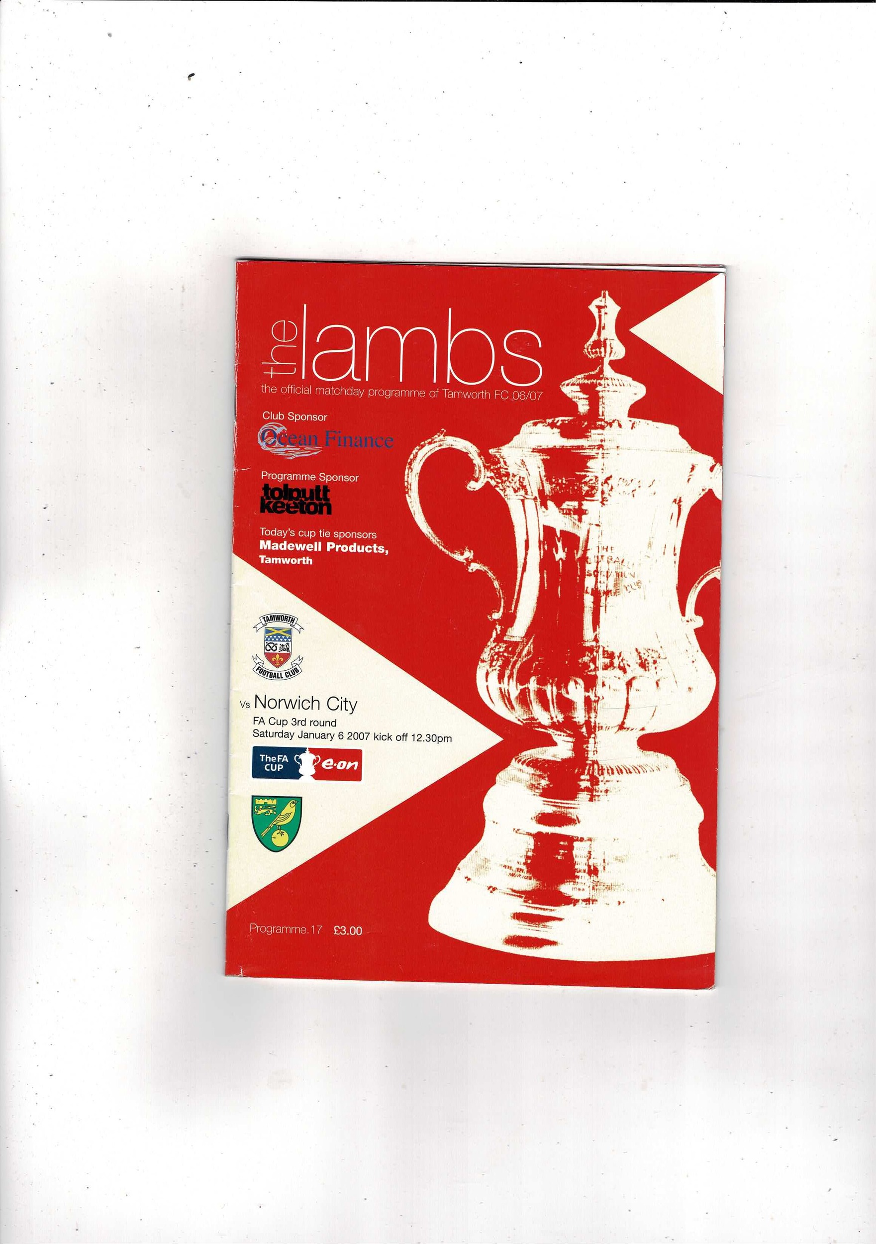 Tamworth v Norwich City FA Cup Football Programme 2006/07