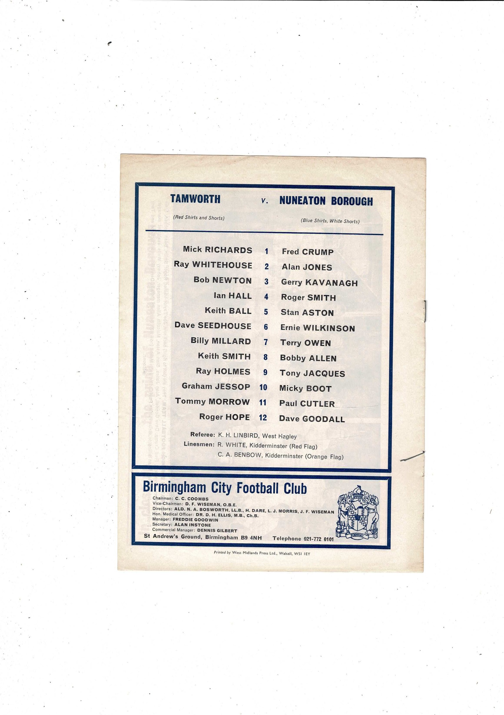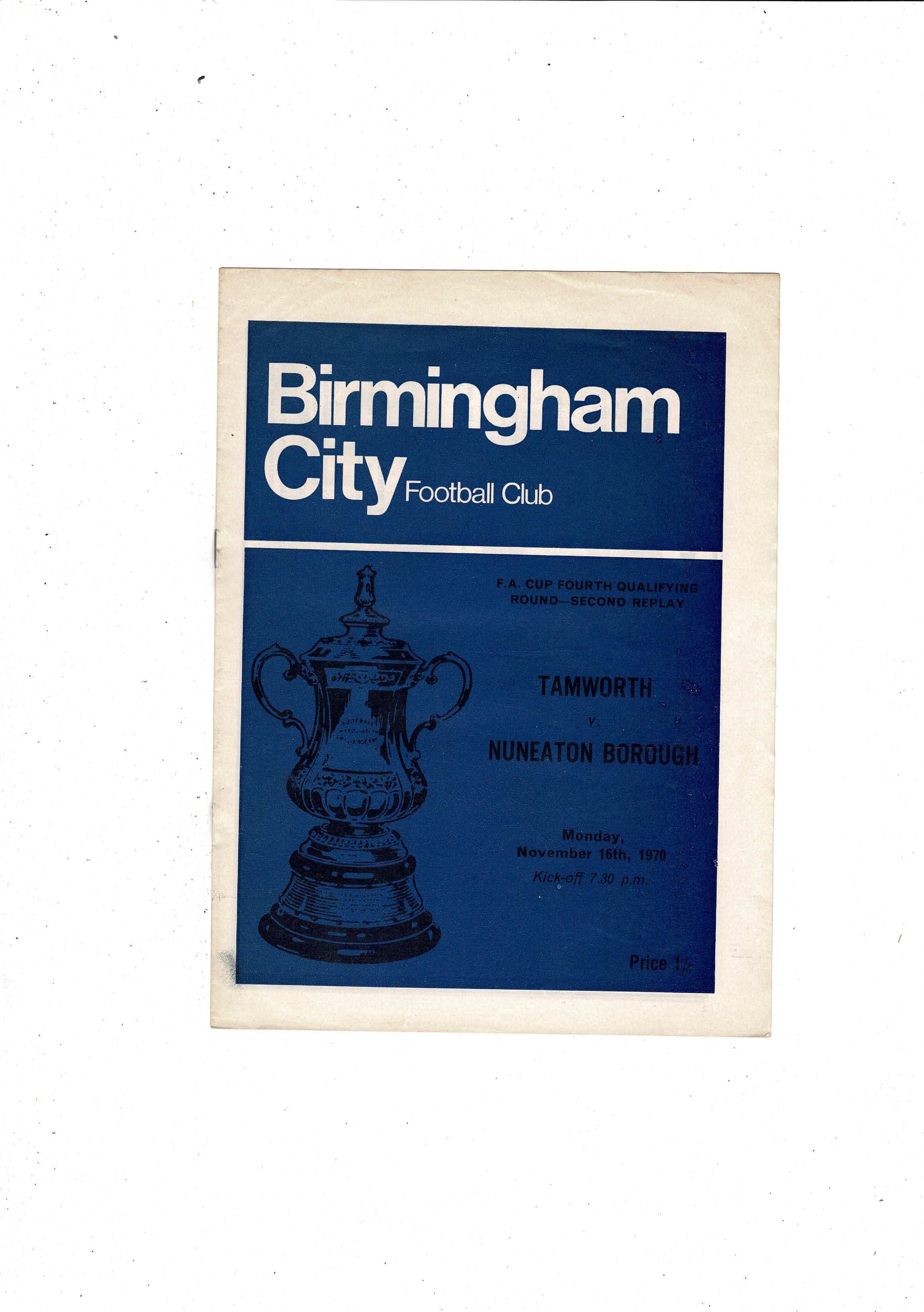 Tamworth v Nuneaton Borough 2nd Replay FA Cup Football Programme @ Birmingham 1970/71