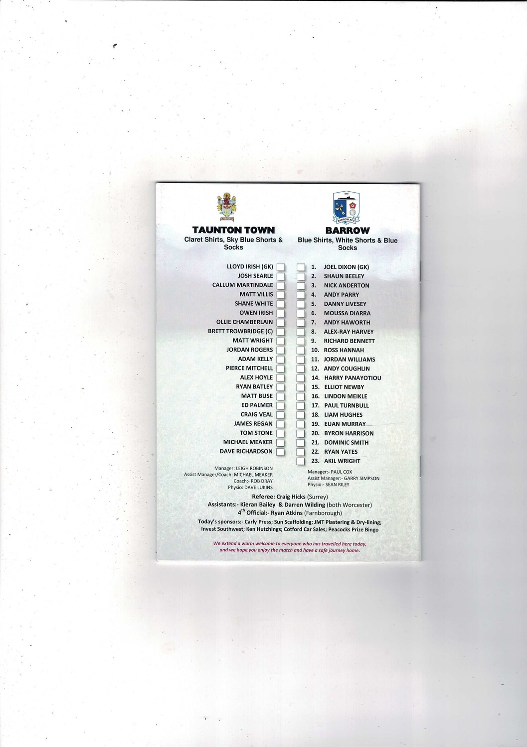 Taunton Town v Barrow FA Cup Football Programme 2016/17