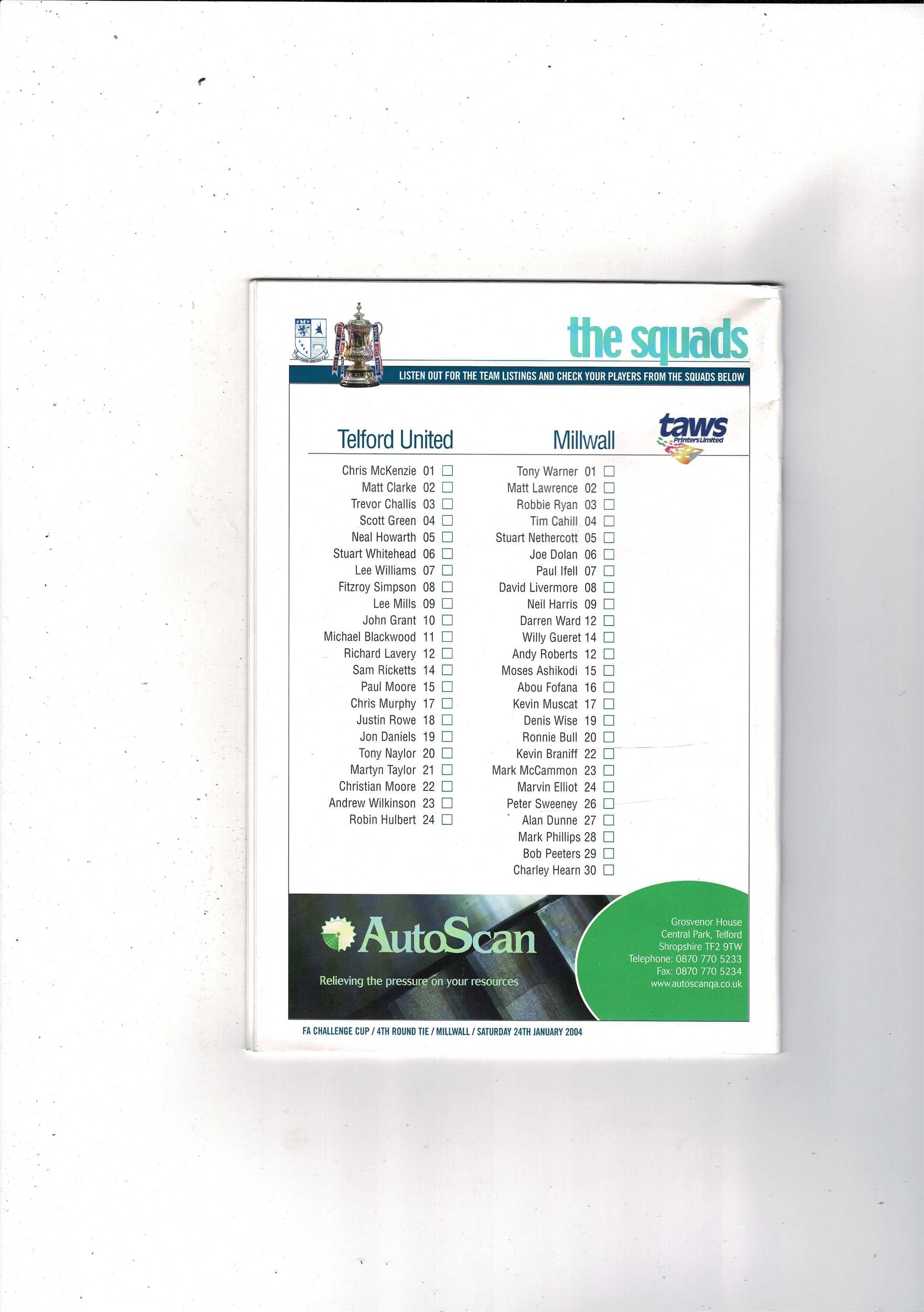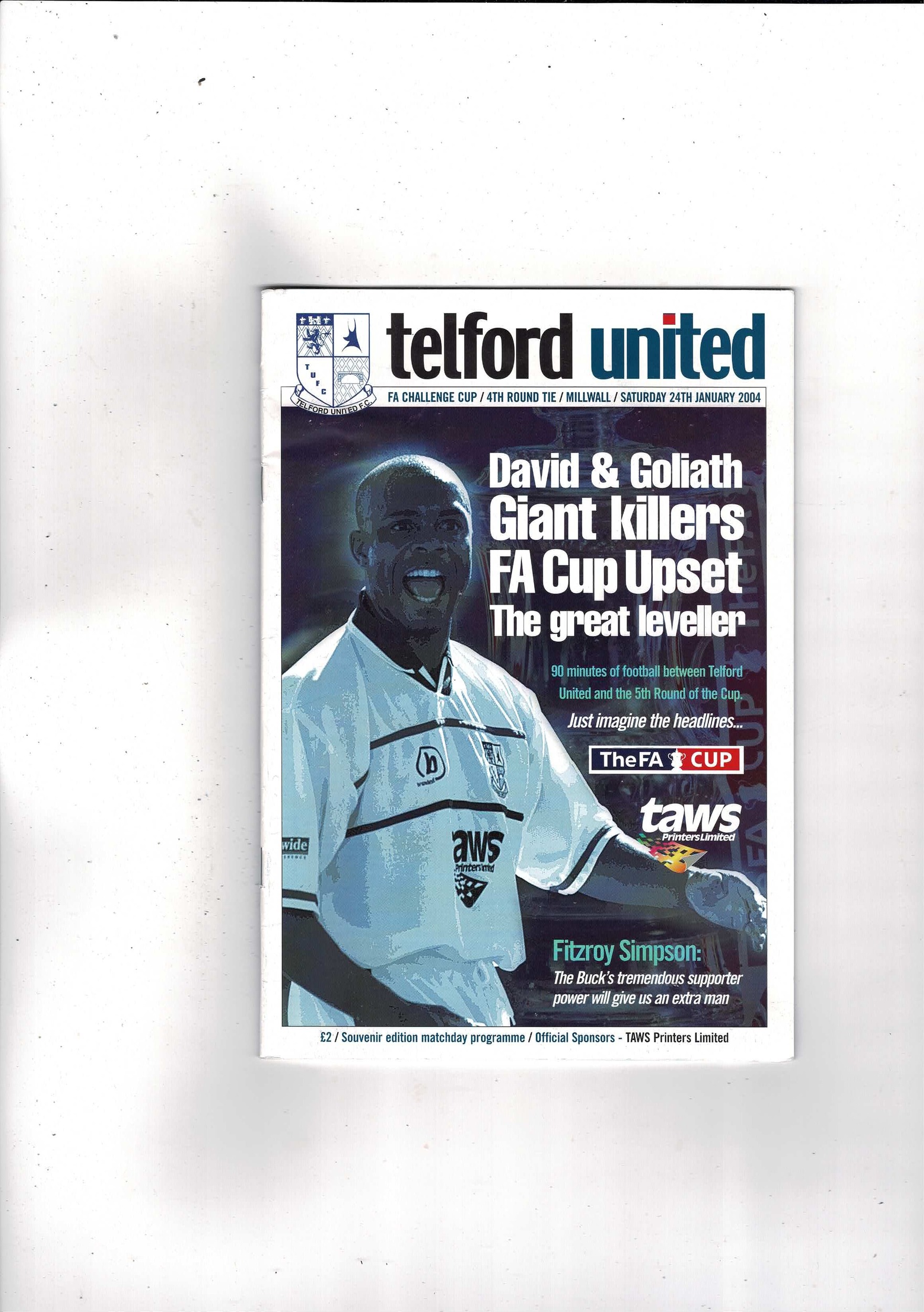 Telford United v Millwall FA Cup Football Programme Postponed + Press Cutting