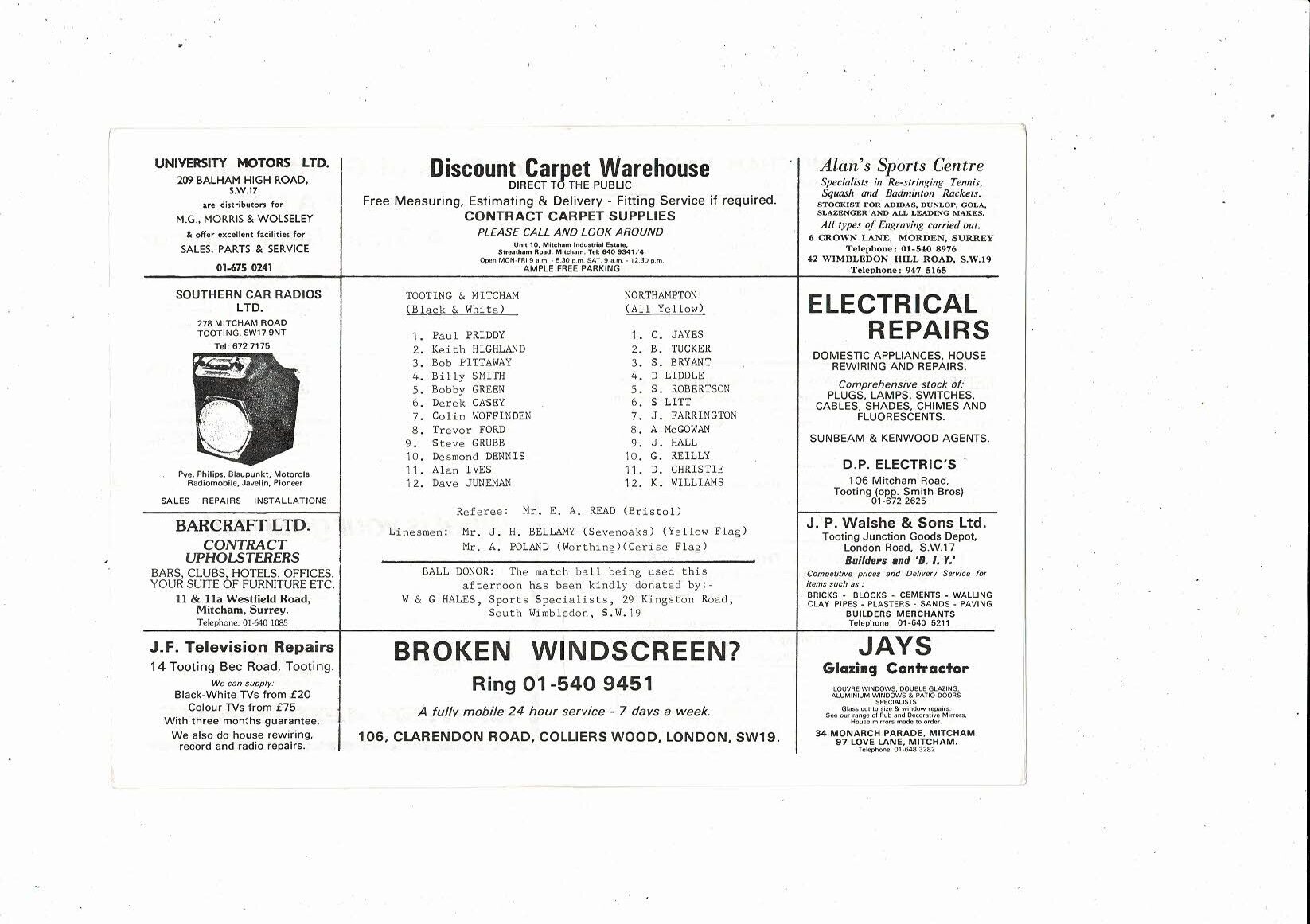 Tooting & Mitcham v Northampton Town FA Cup Football Programme 1977/78