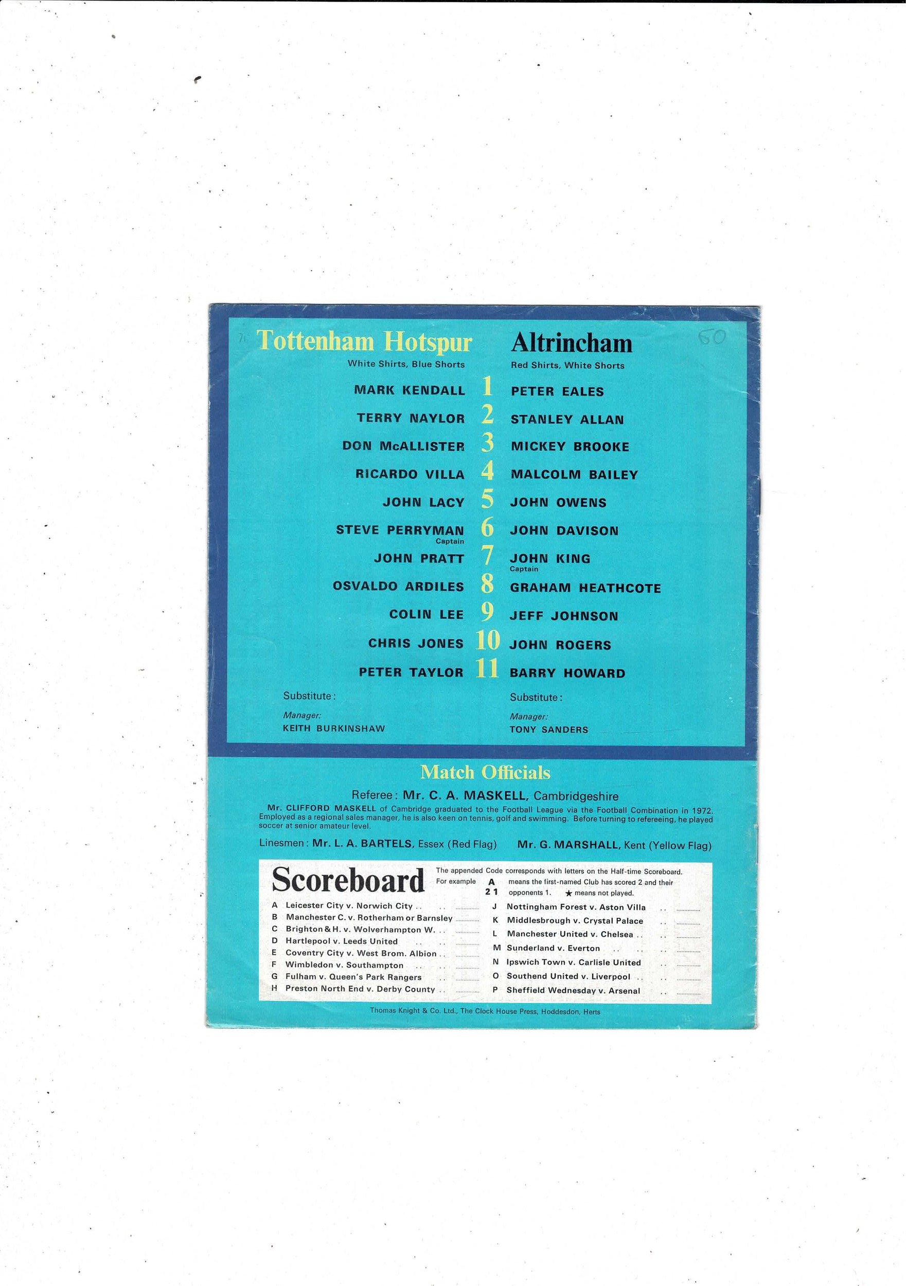 Tottenham Hotspur v Altrincham FA Cup Football Programme 1978/79