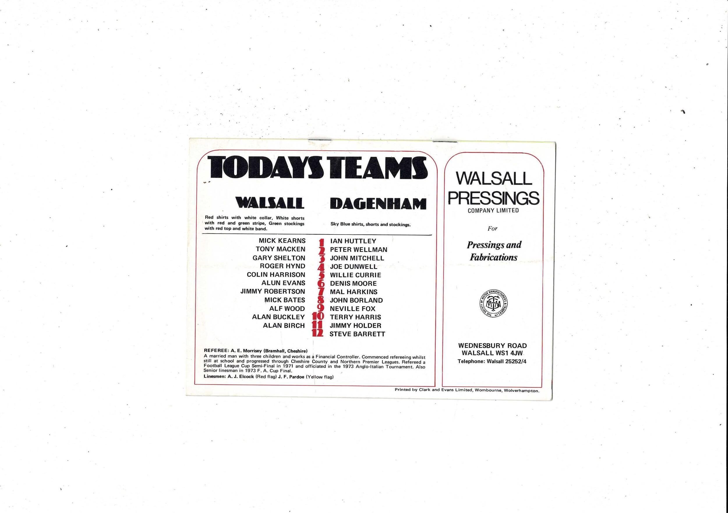 Walsall v Dagenham FA Cup Football Programme 1977/78