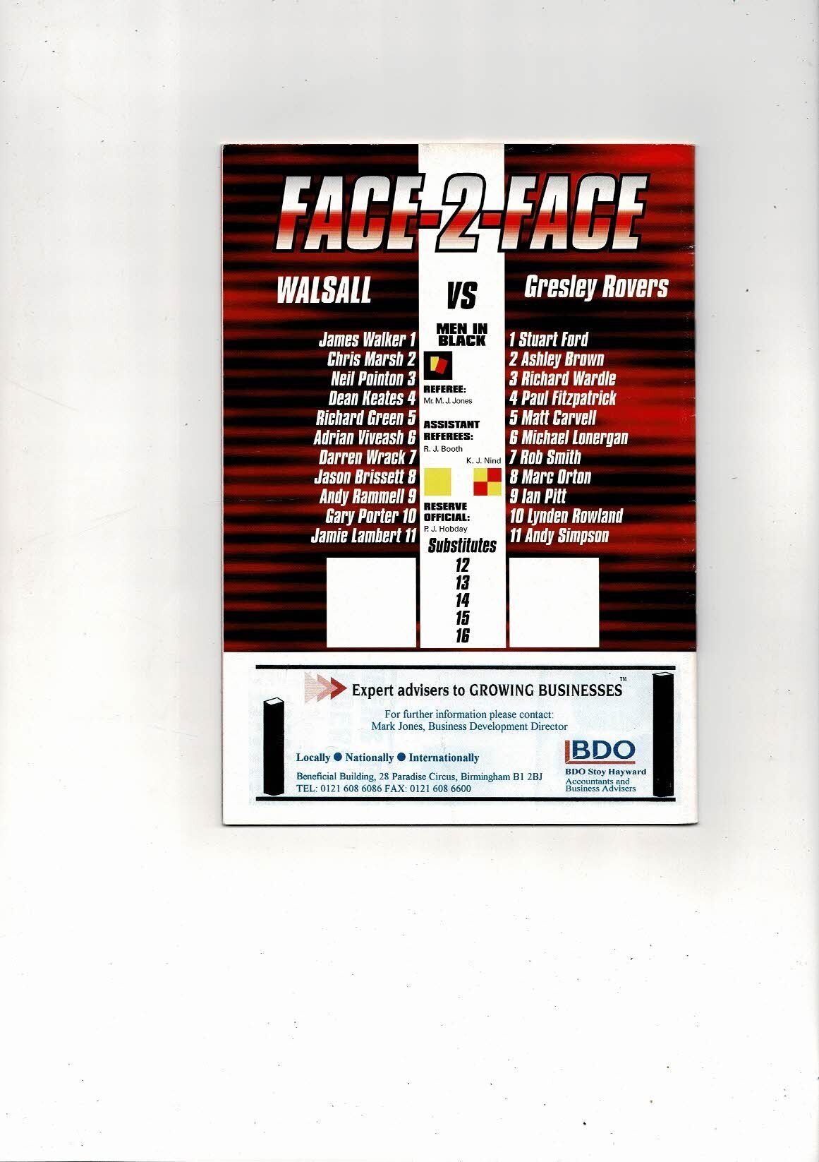 Walsall v Gresley Rovers FA Cup Football Programme 1998/99