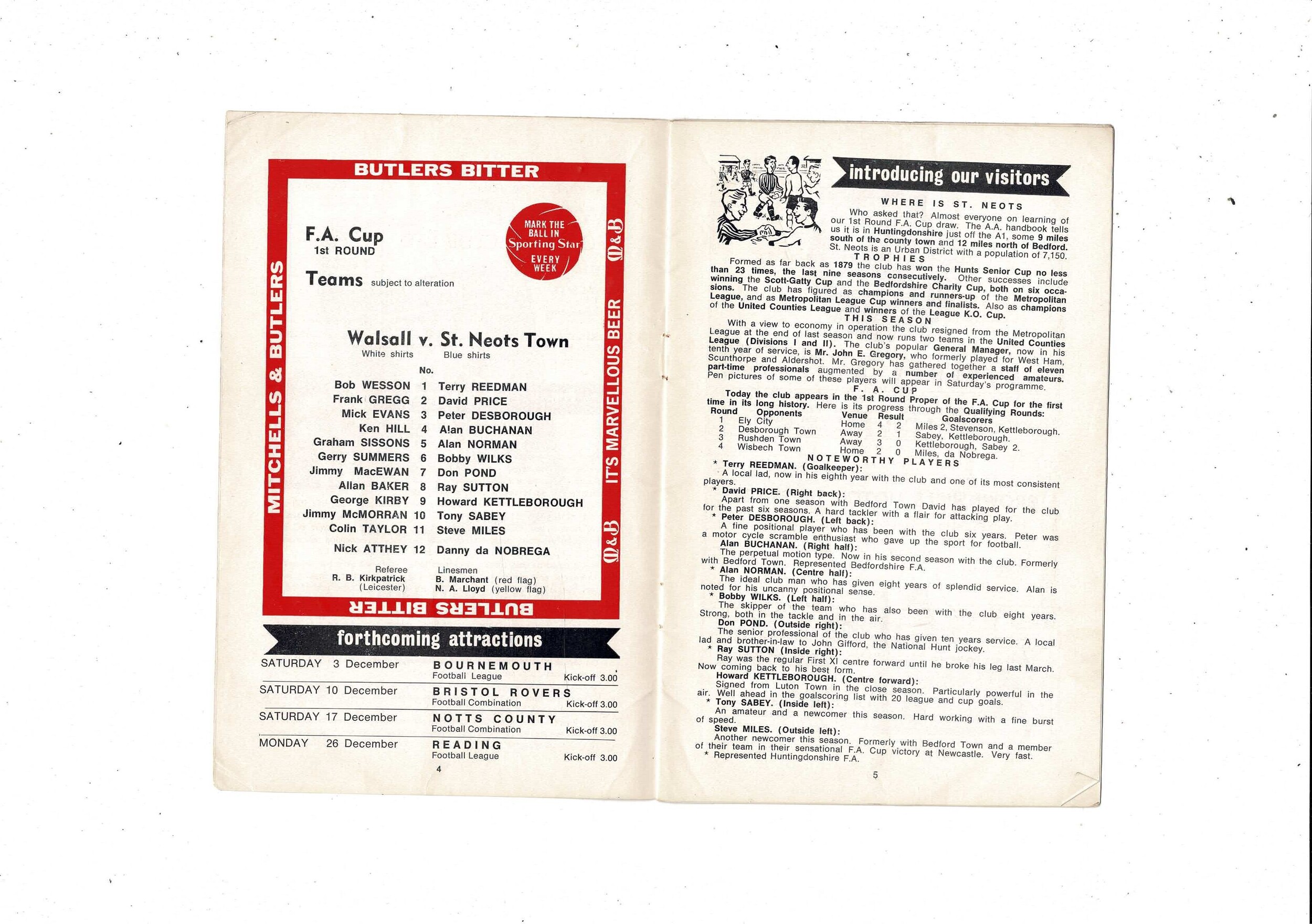 Walsall v St Albans City FA Cup Football Programme 1966/67