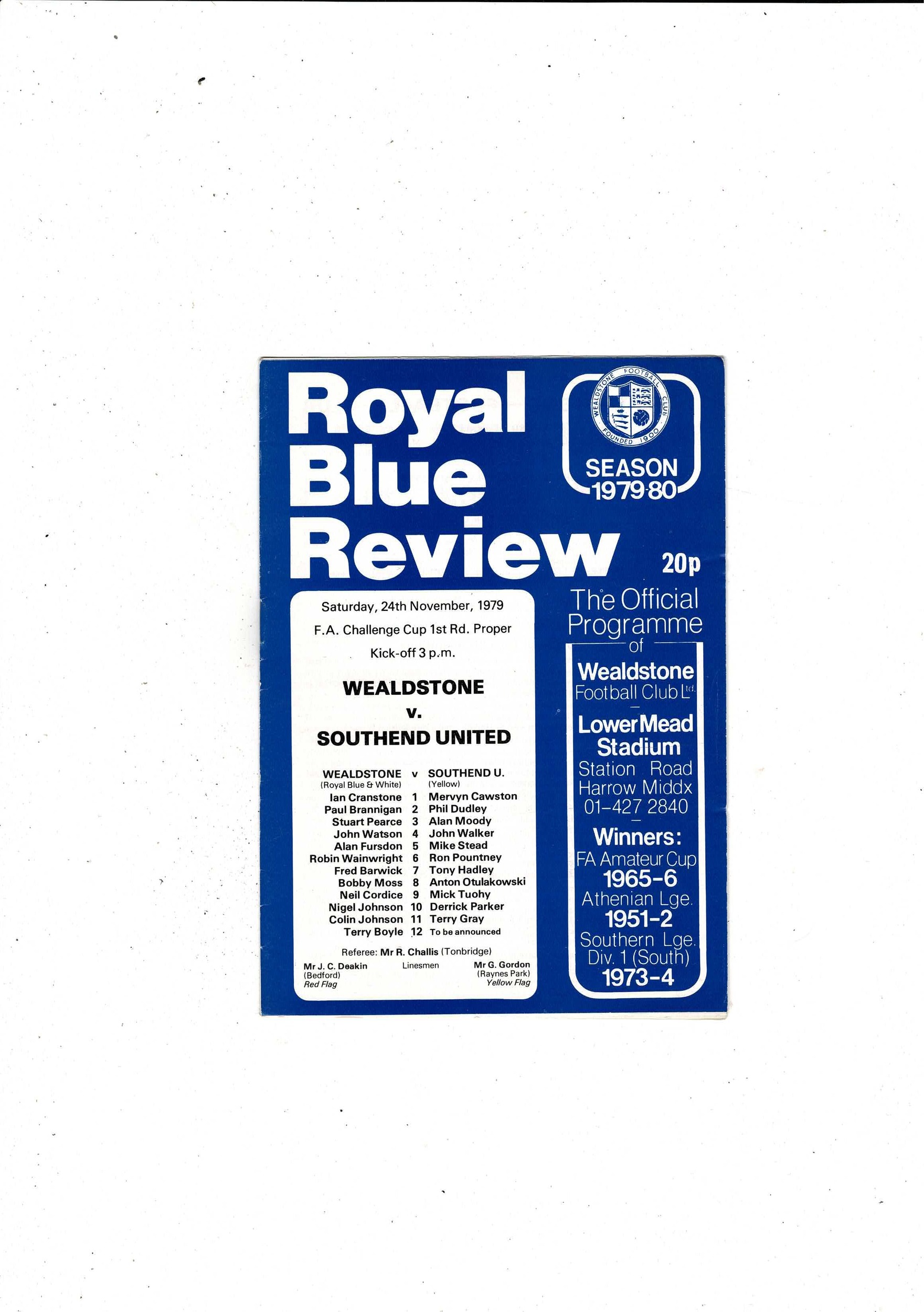 Wealdstone v Southend United FA Cup Football Programme 1979/80
