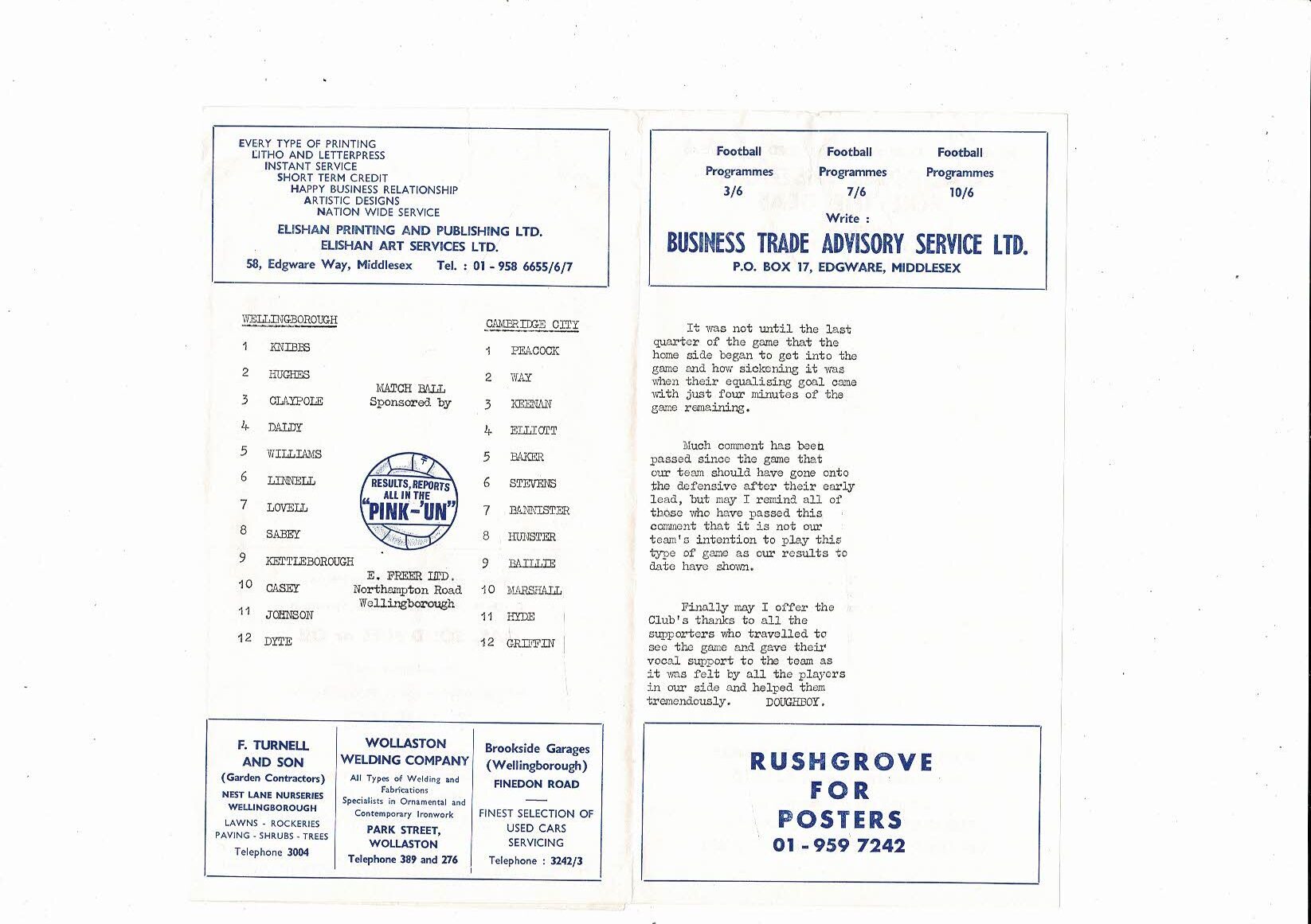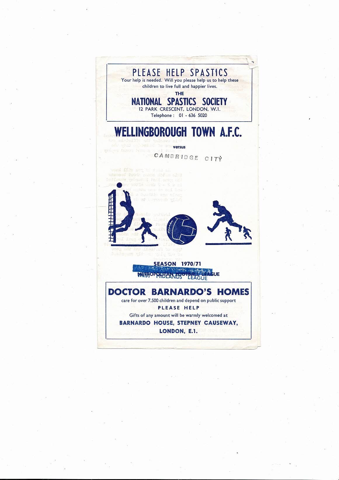 Wellingborough Town v Cambridge City FA Cup Football Programme 1970/71
