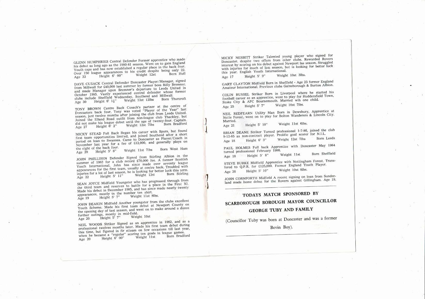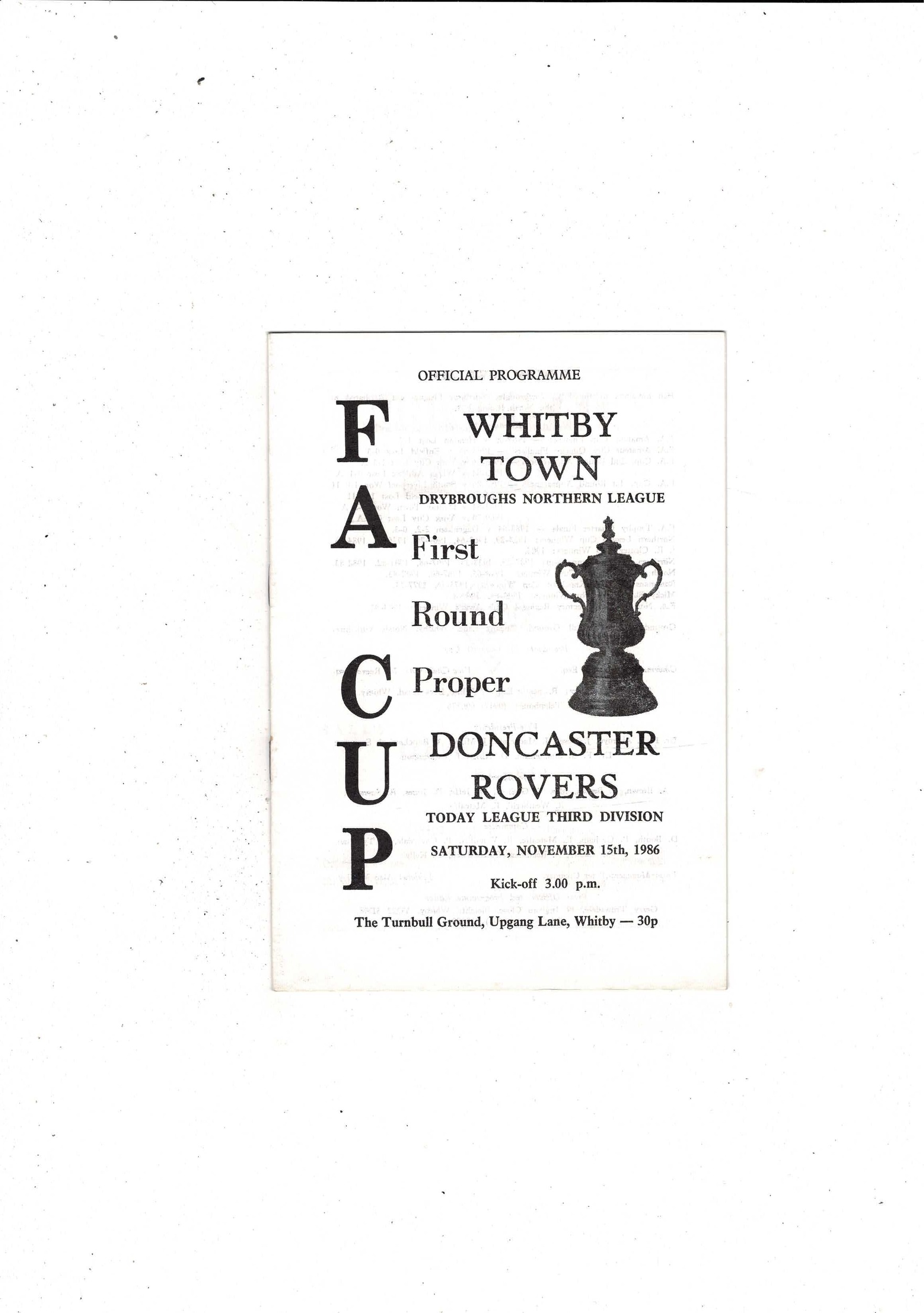 Whitby Town v Doncaster Rovers FA Cup Football Programme 1986/87