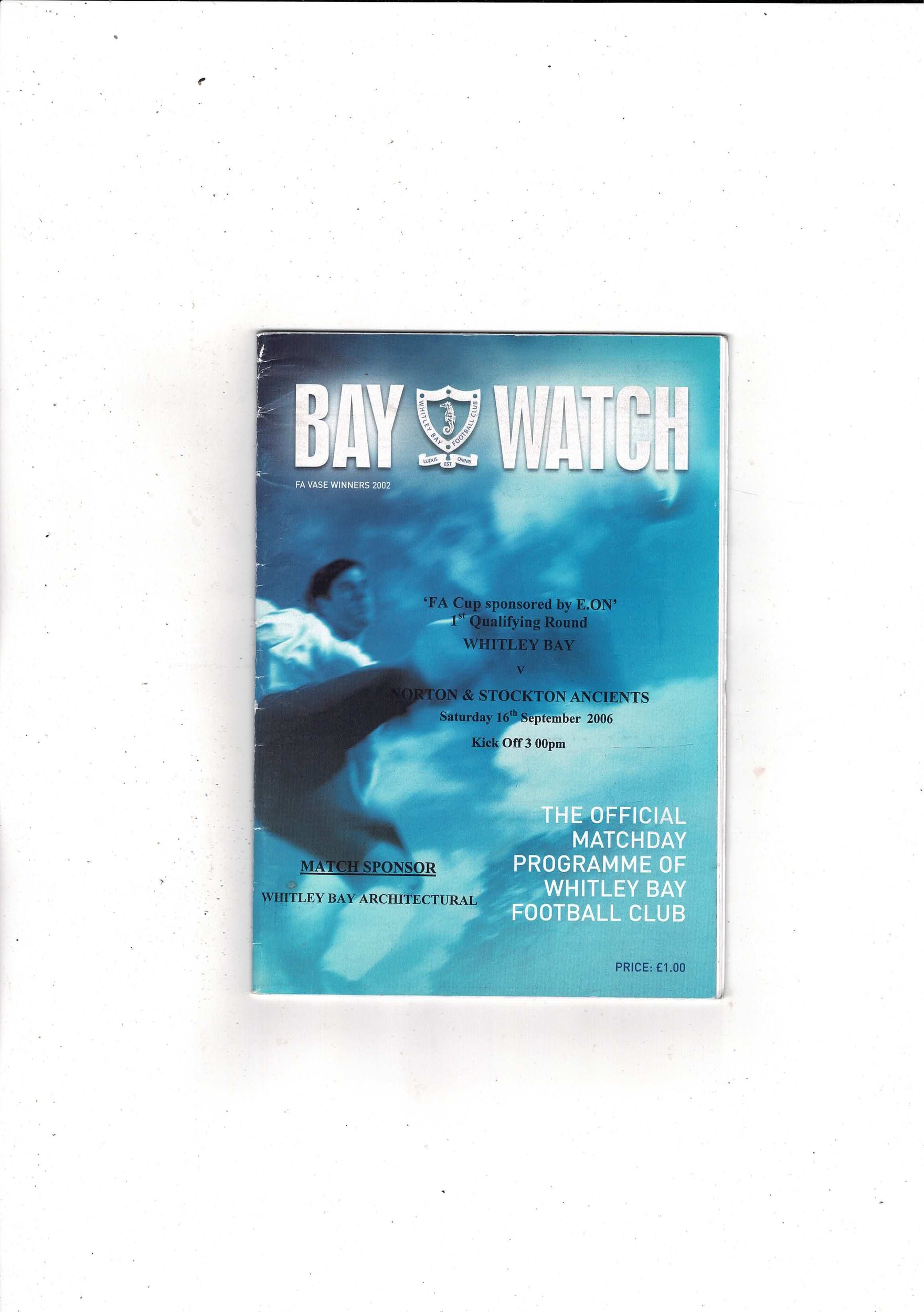Whitley Bay v Norton & Stockton Ancients FA Cup Football Programme 2006/07