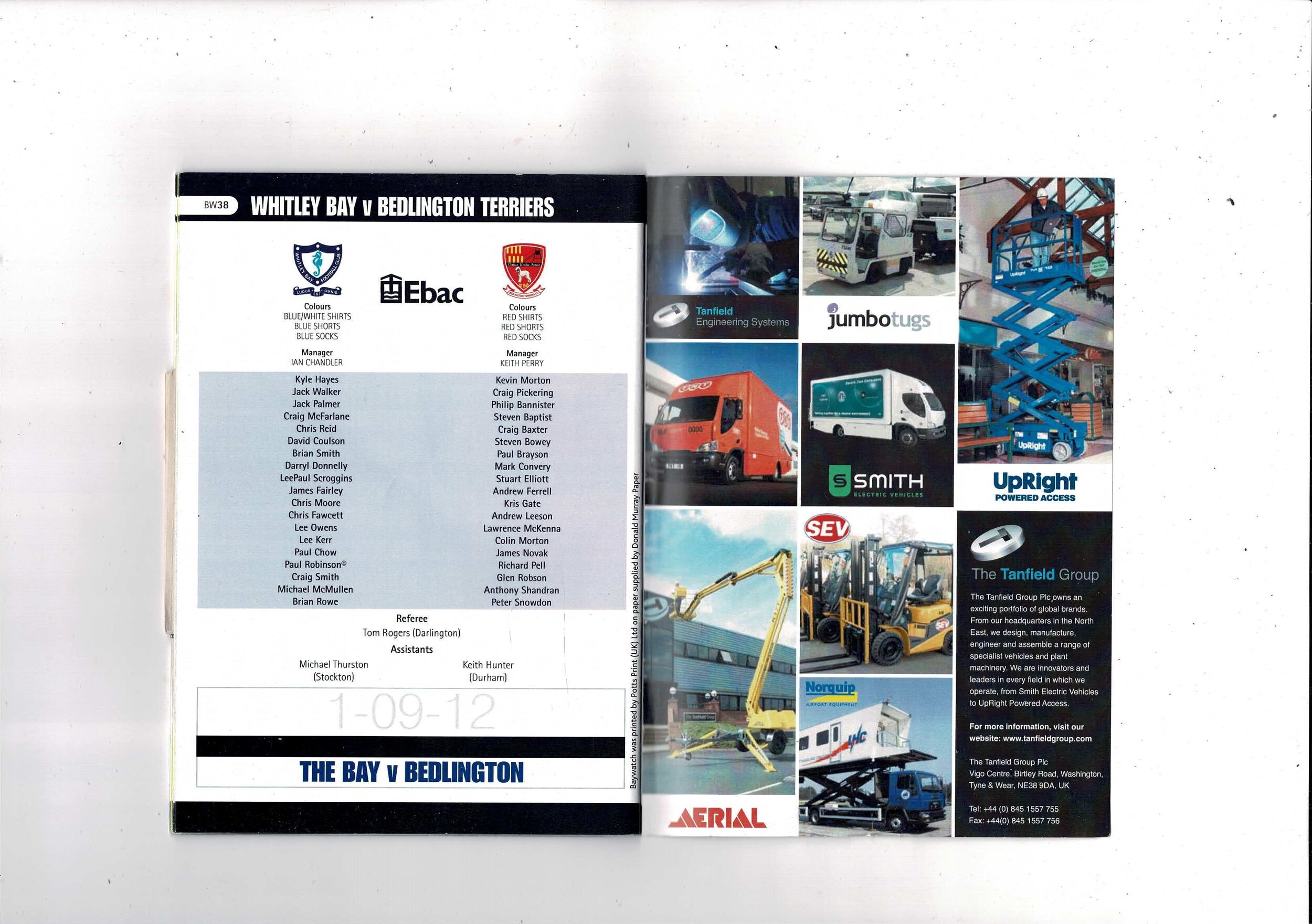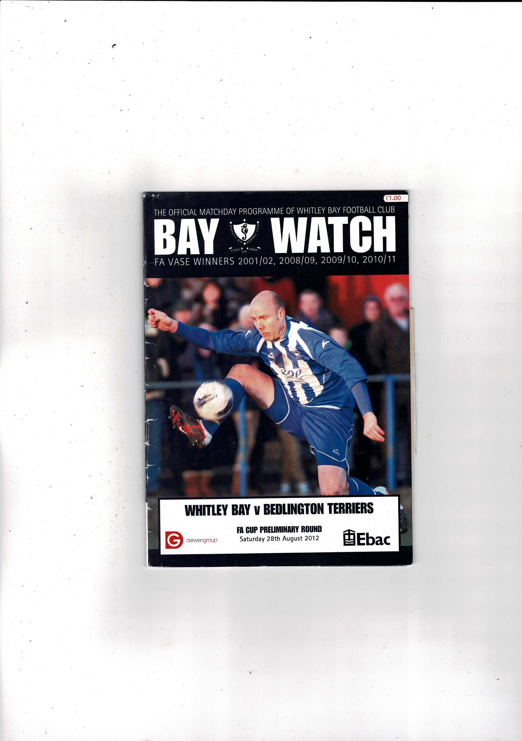 Whitley Bay v Bedlington Terriers FA Cup Football Programme 2012/13 + Press Cuttings