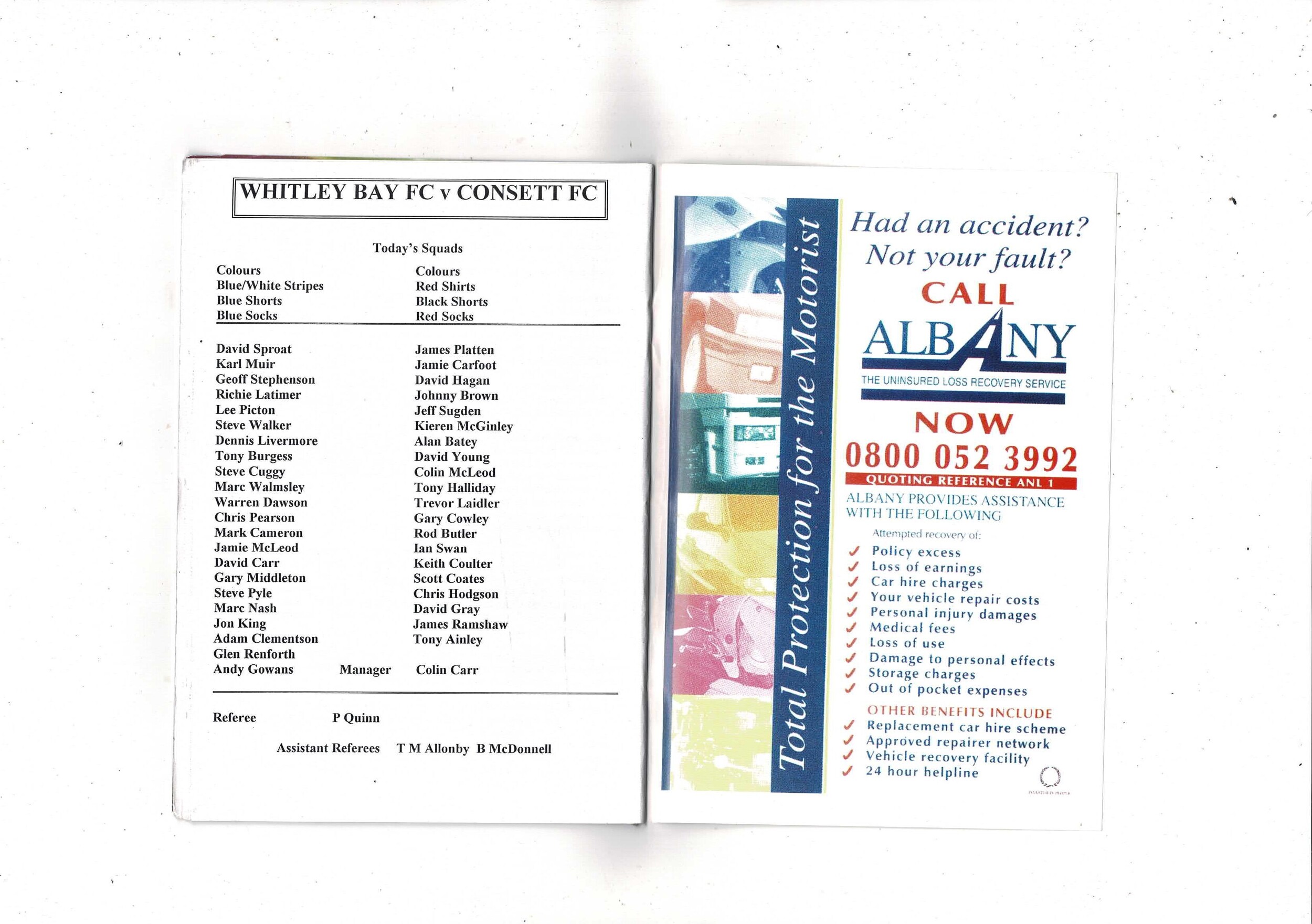 Whitley Bay v Consett FA Cup Football Programme 2000/01