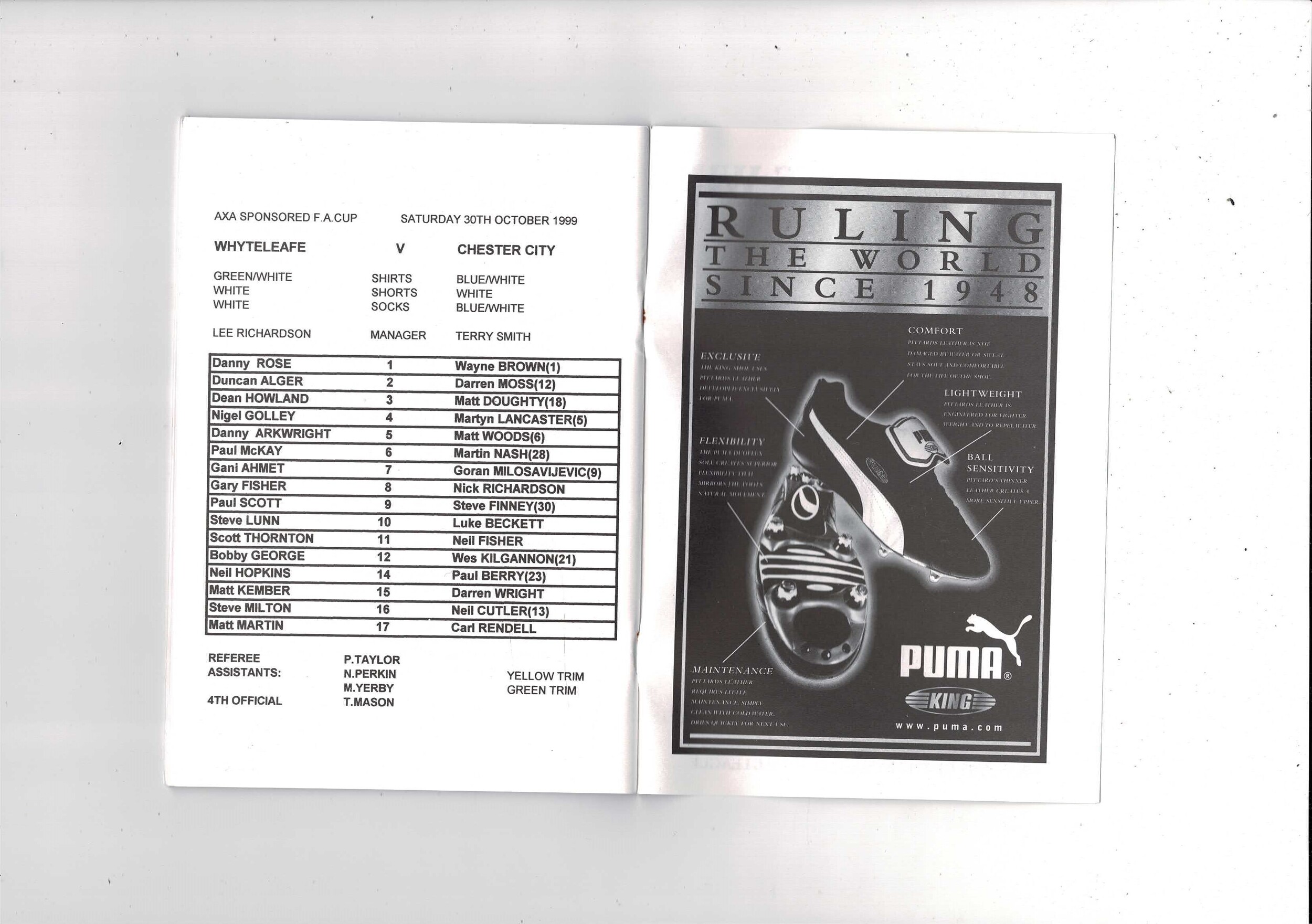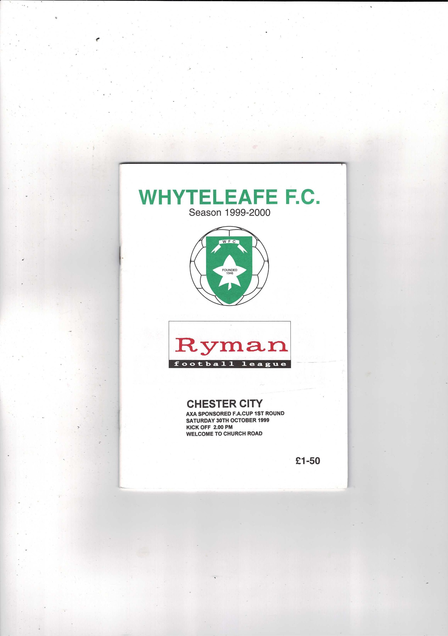 Whyteleafe v Chester City FA Cup Football Programme 1999/00