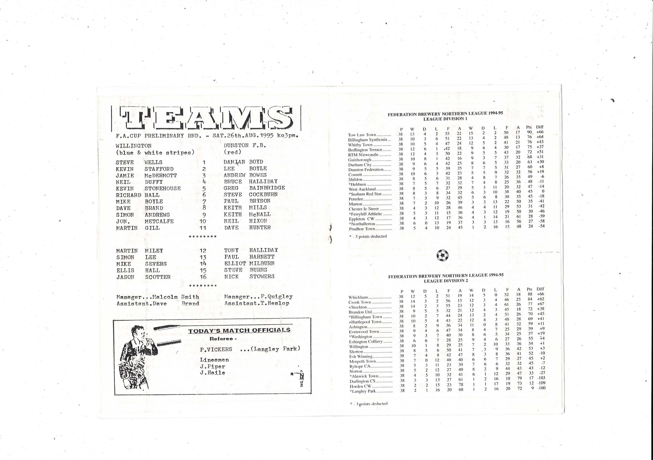 Willington v Dunston FA Cup Football Programme 1995/96