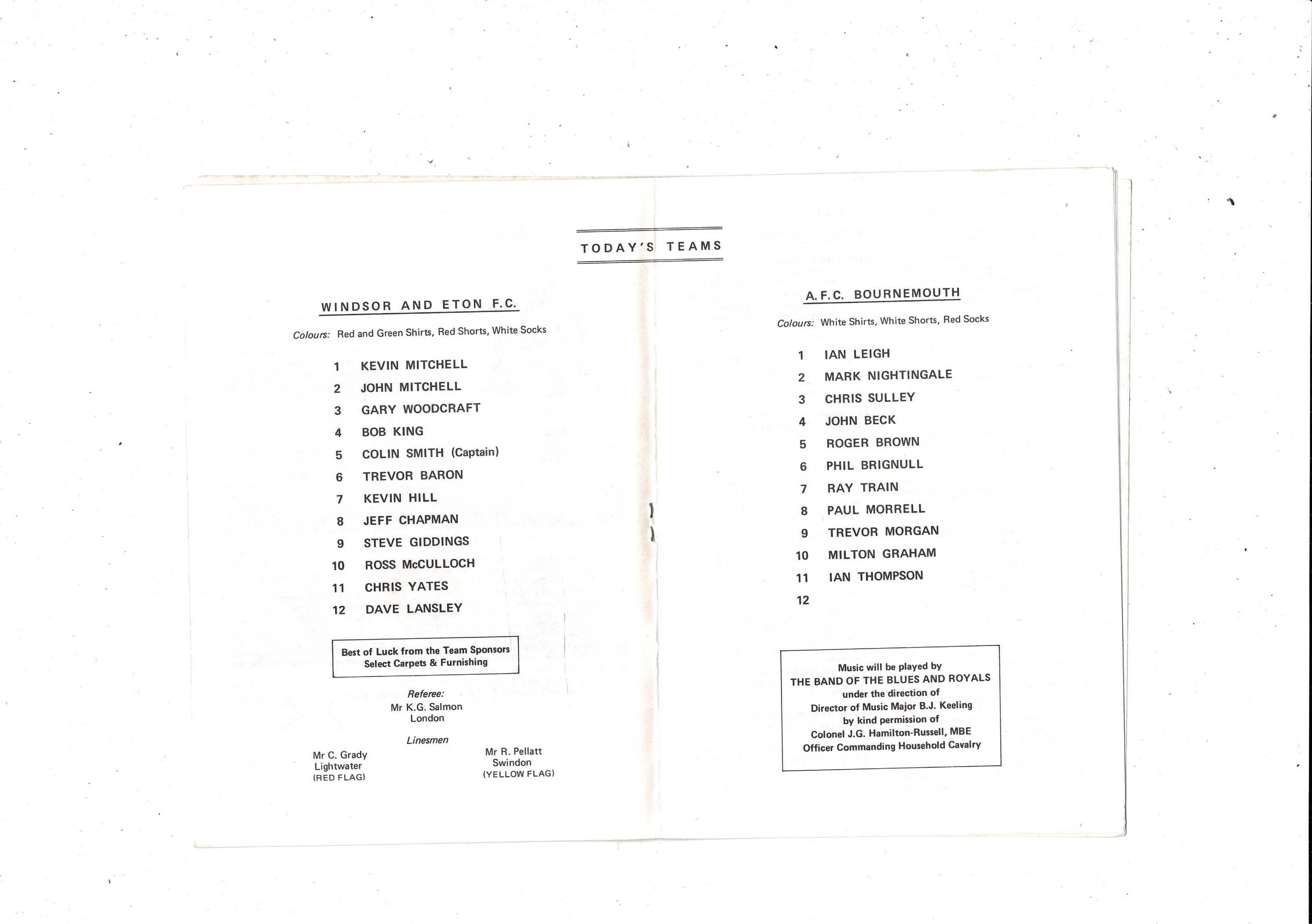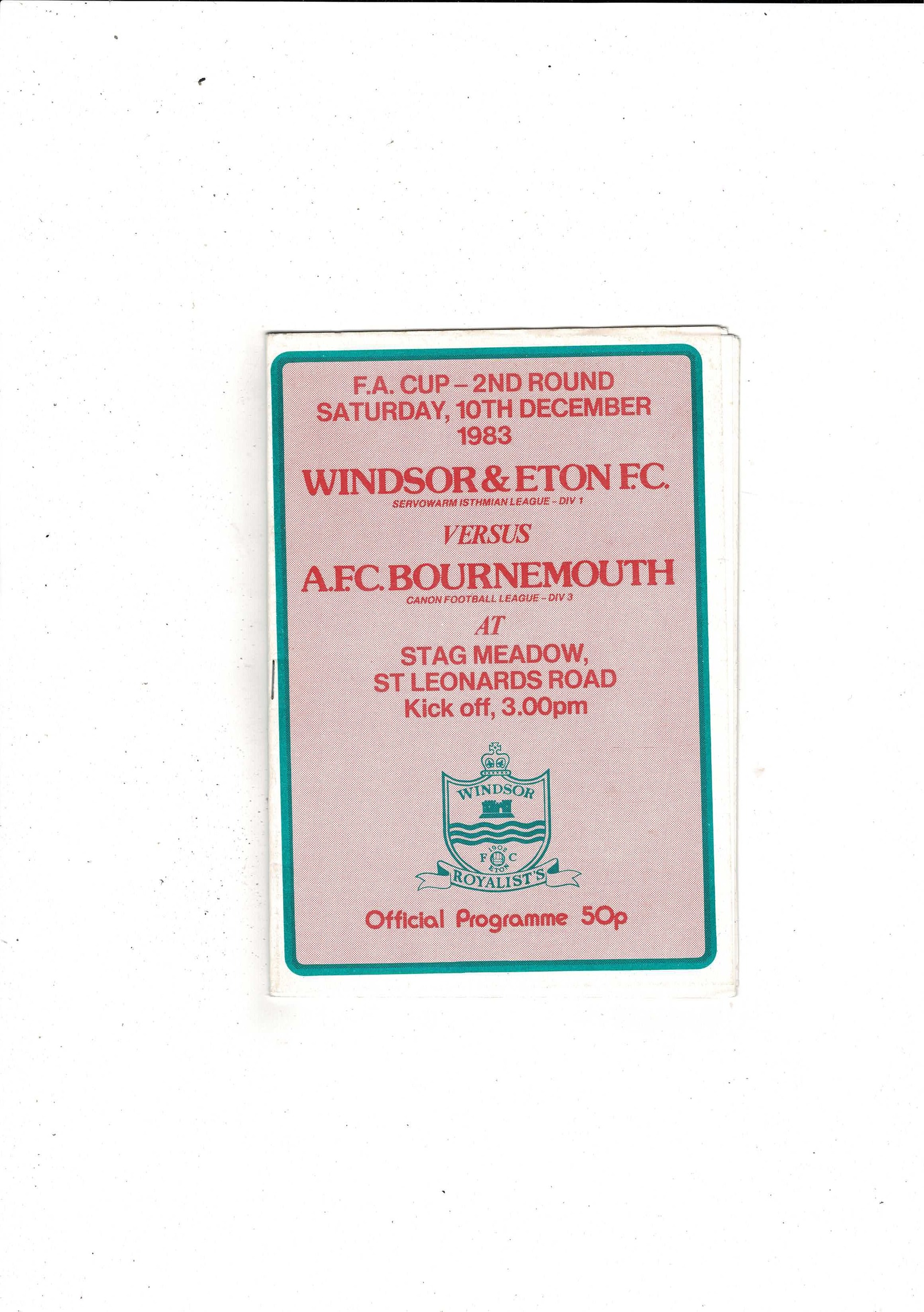 Windsor & Eton v Bournemouth FA Cup Football Programme 1983/84