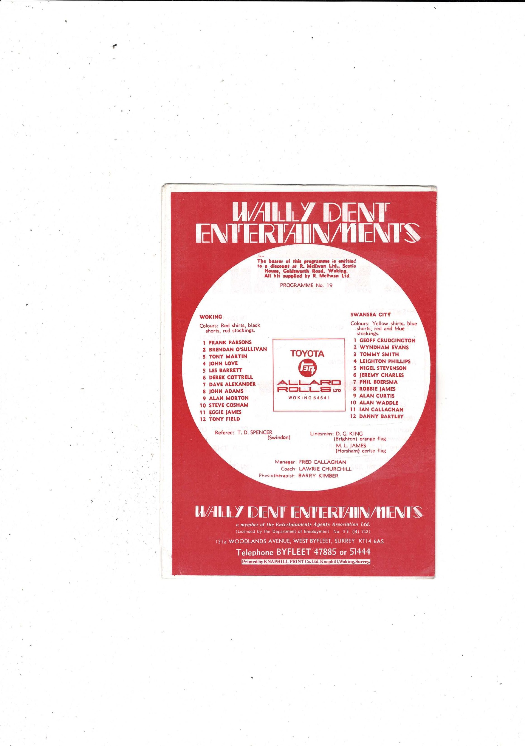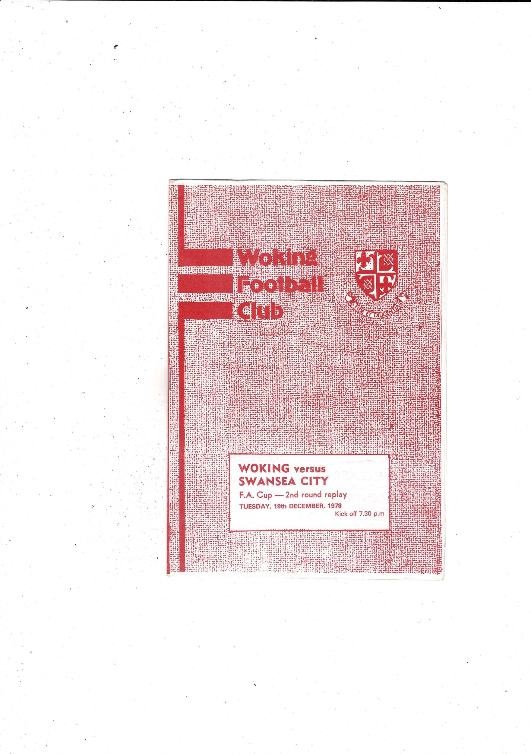 Woking v Swansea FA Cup Replay Football Programme 1978/79