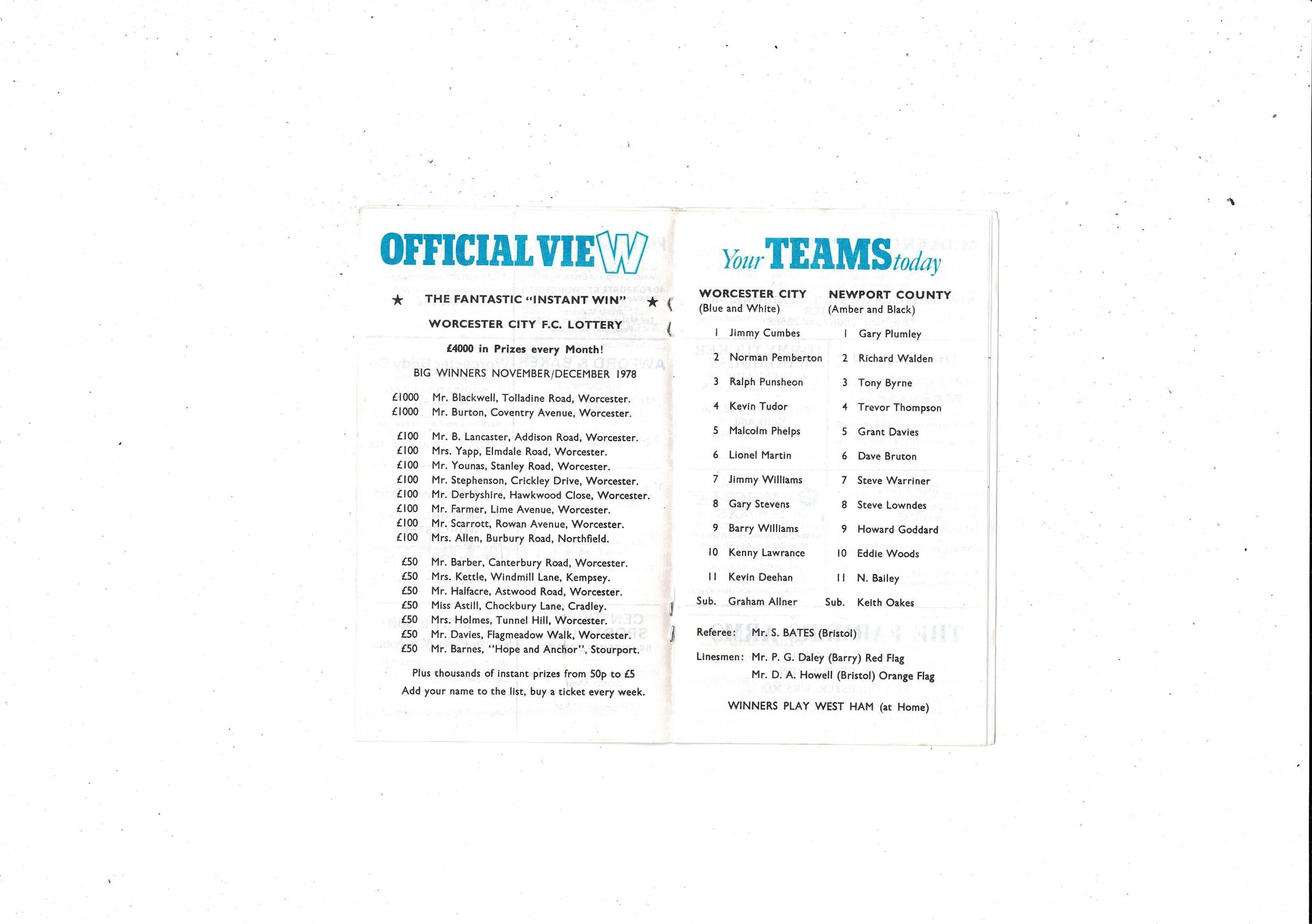 Worcester City v Newport County FA Cup Replay Football Programme 1978/79