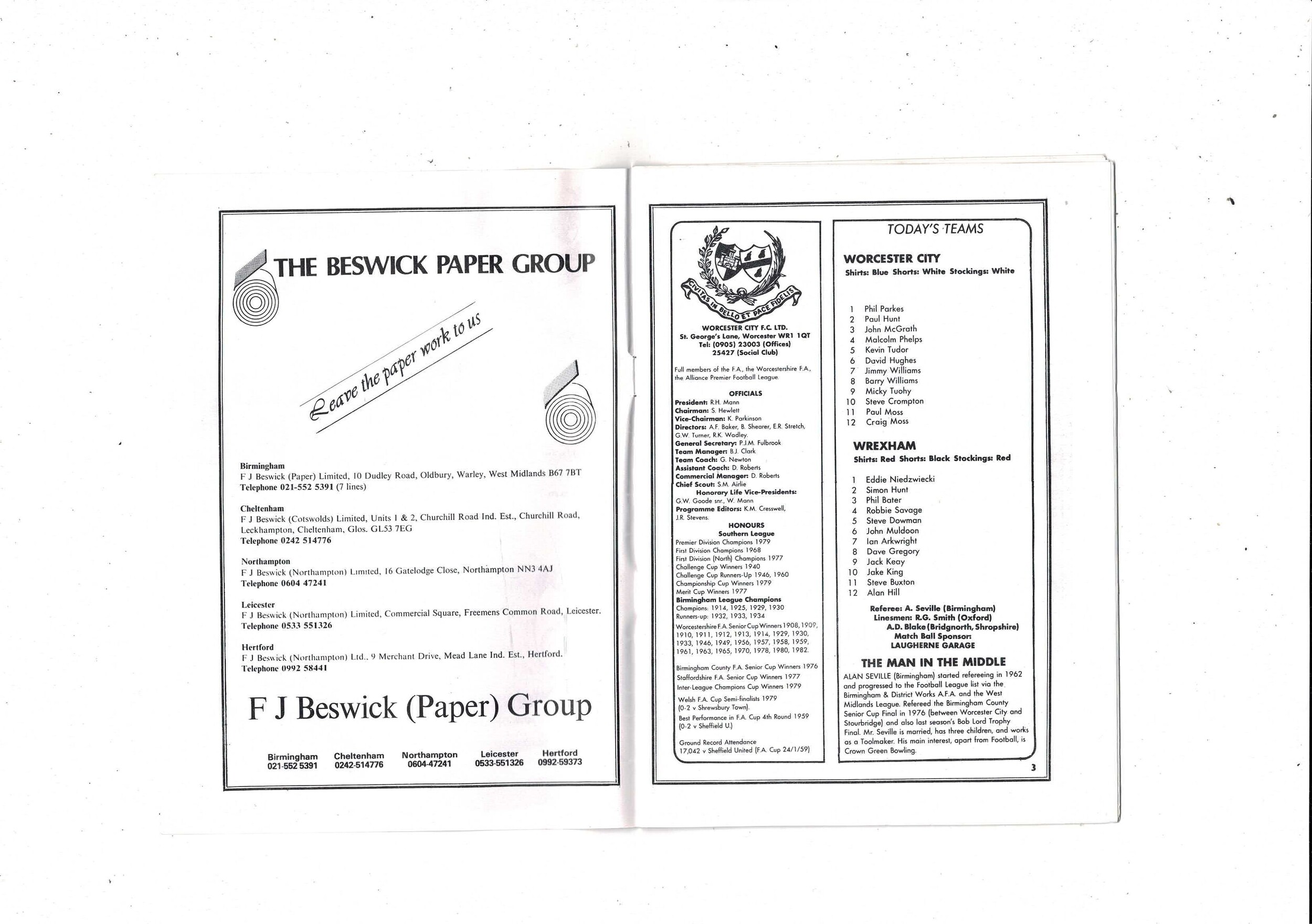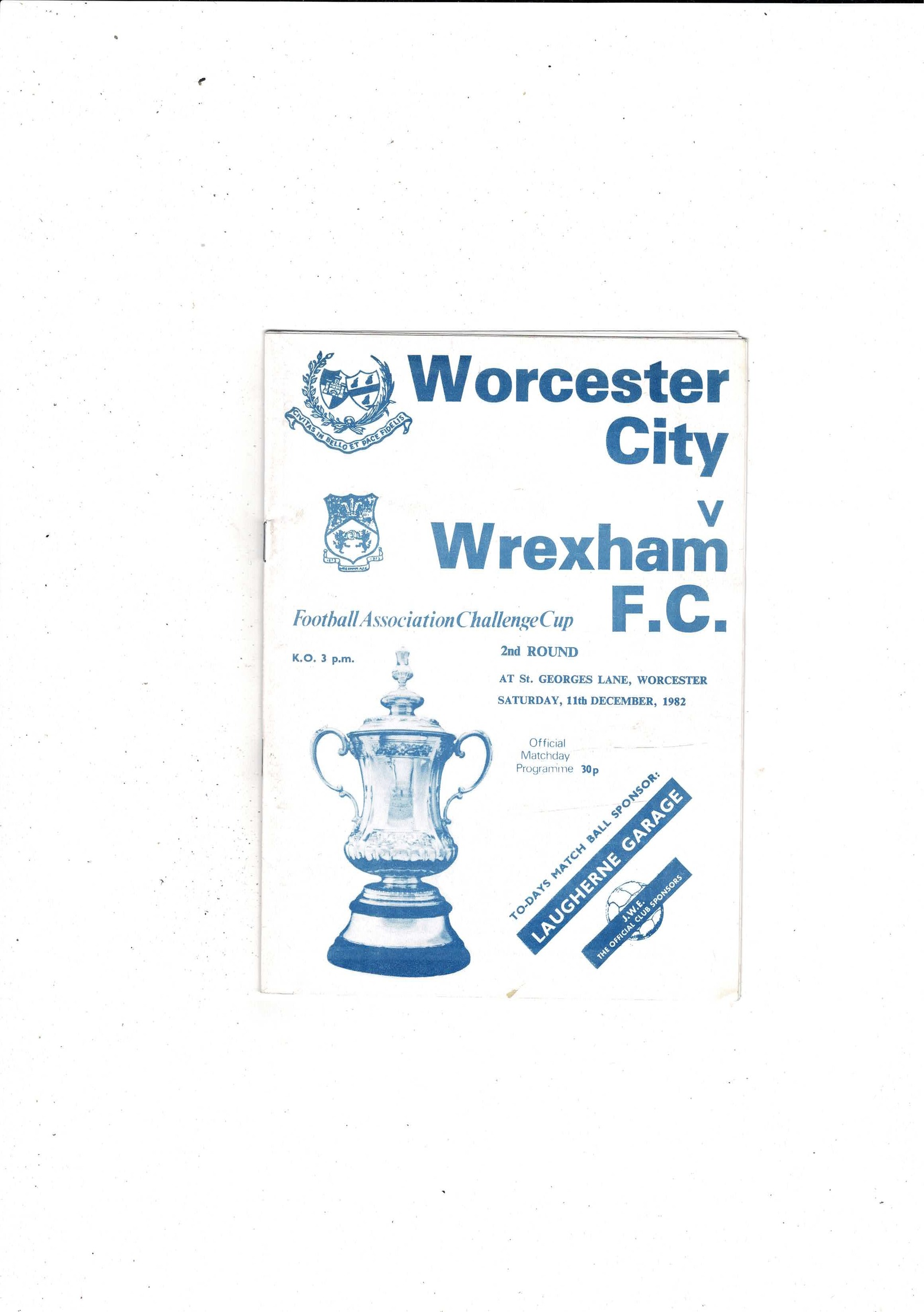 Worcester City v Wrexham FA Cup Football Programme 1982/83