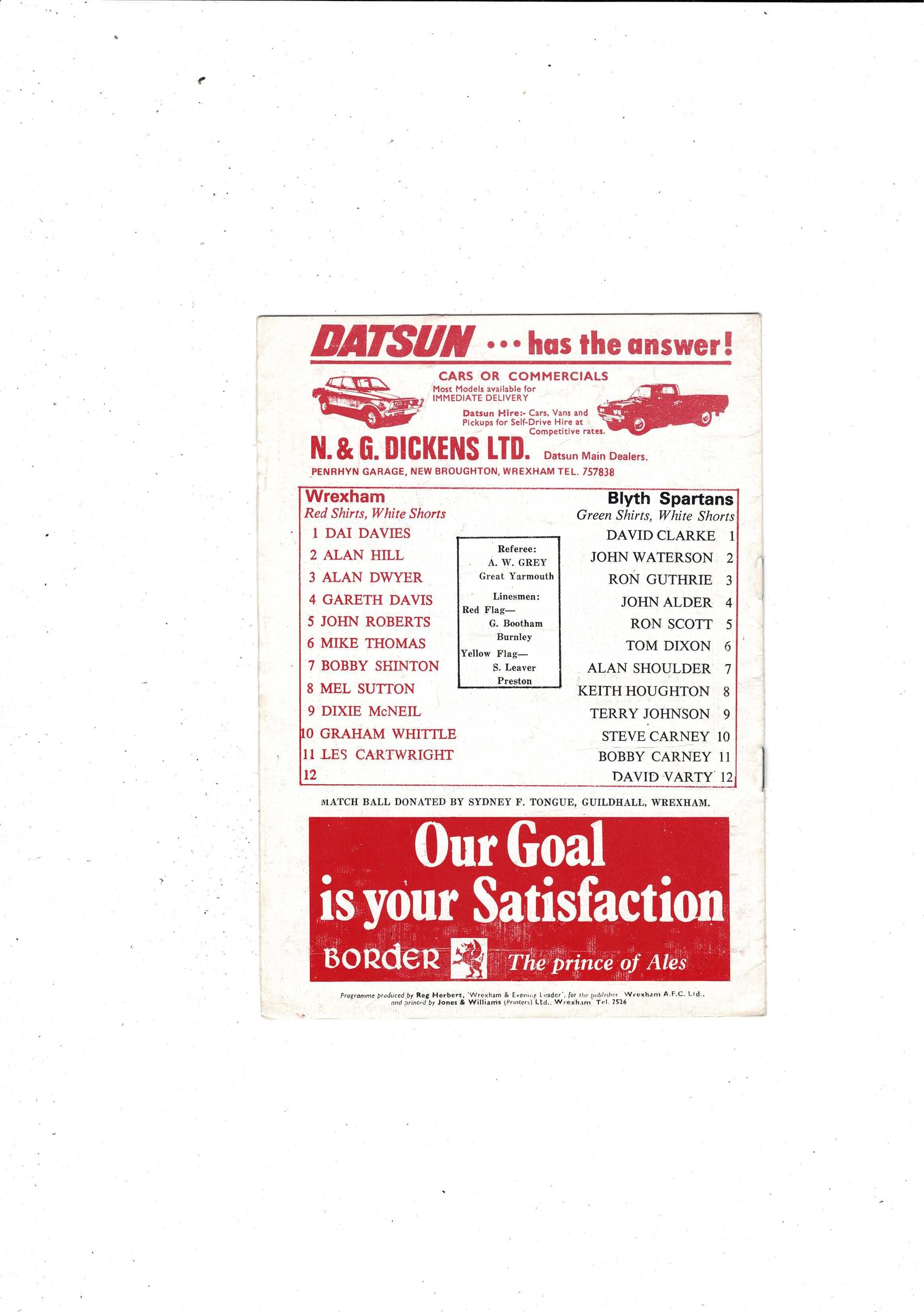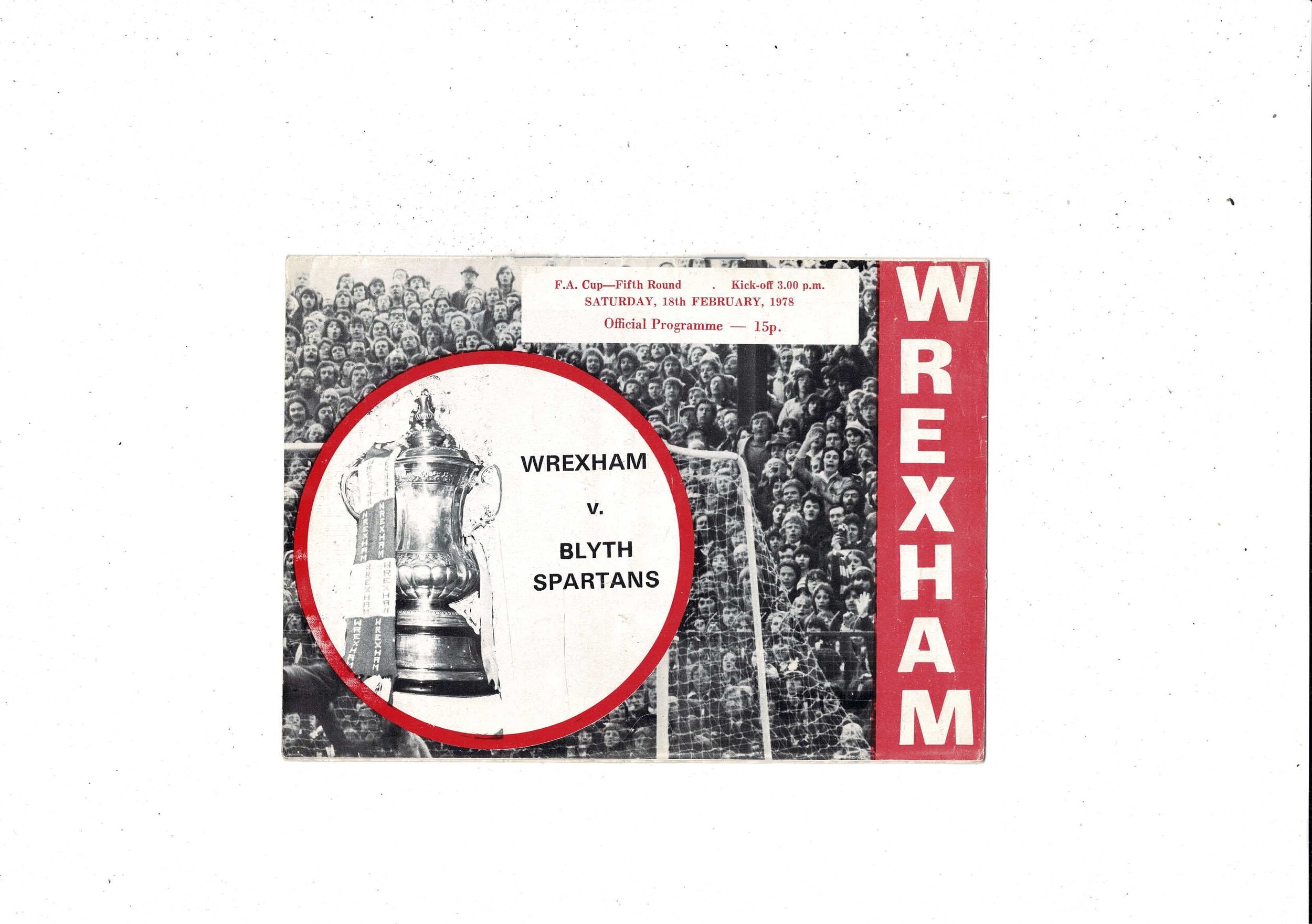 Wrexham v Blyth Spartens FA Cup Football Programme 1977/78