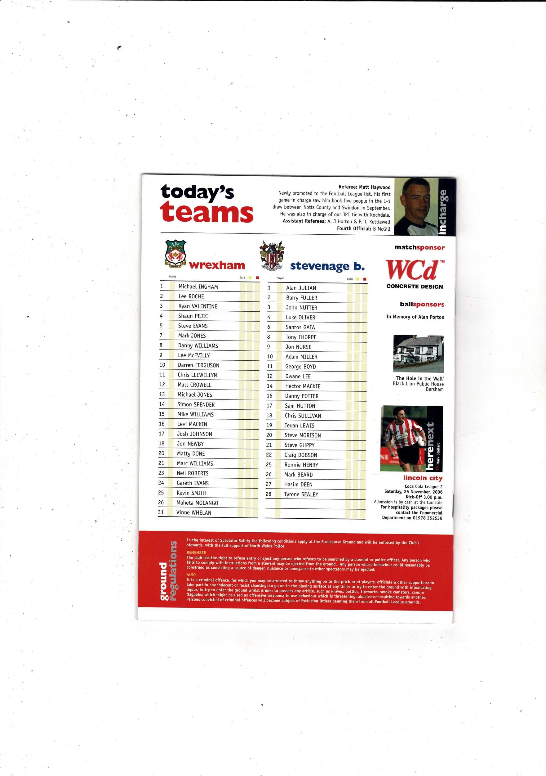 Wrexham v Stevenage Borough FA Cup Football Programme 2006/07