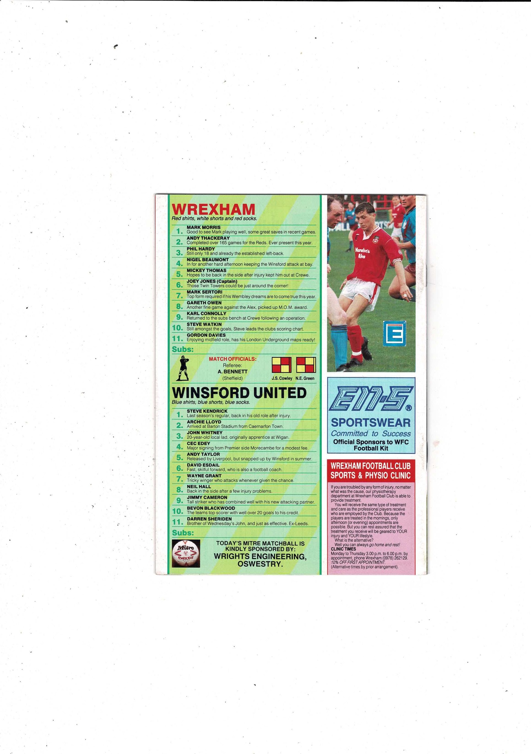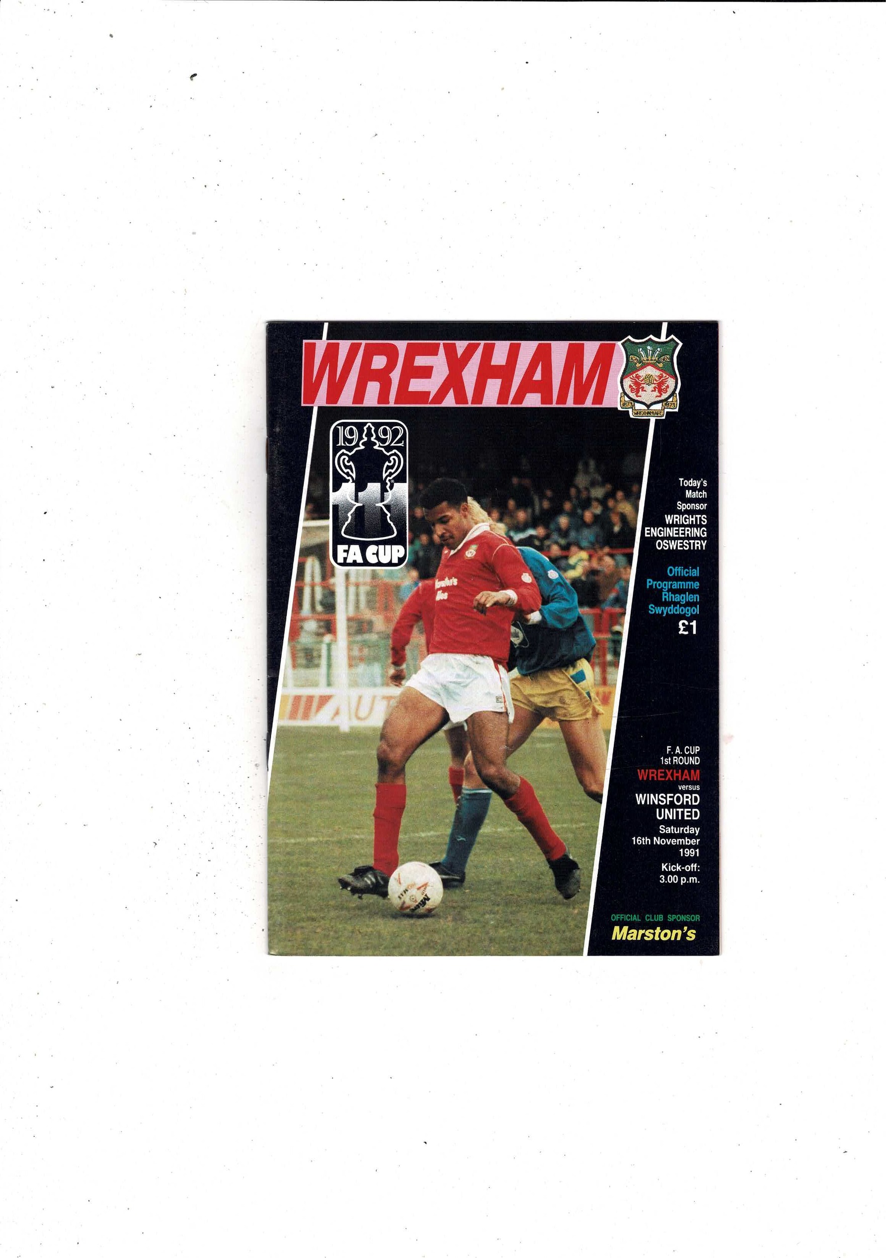 Wrexham v Winsford United FA Cup Football Programme 1991/92