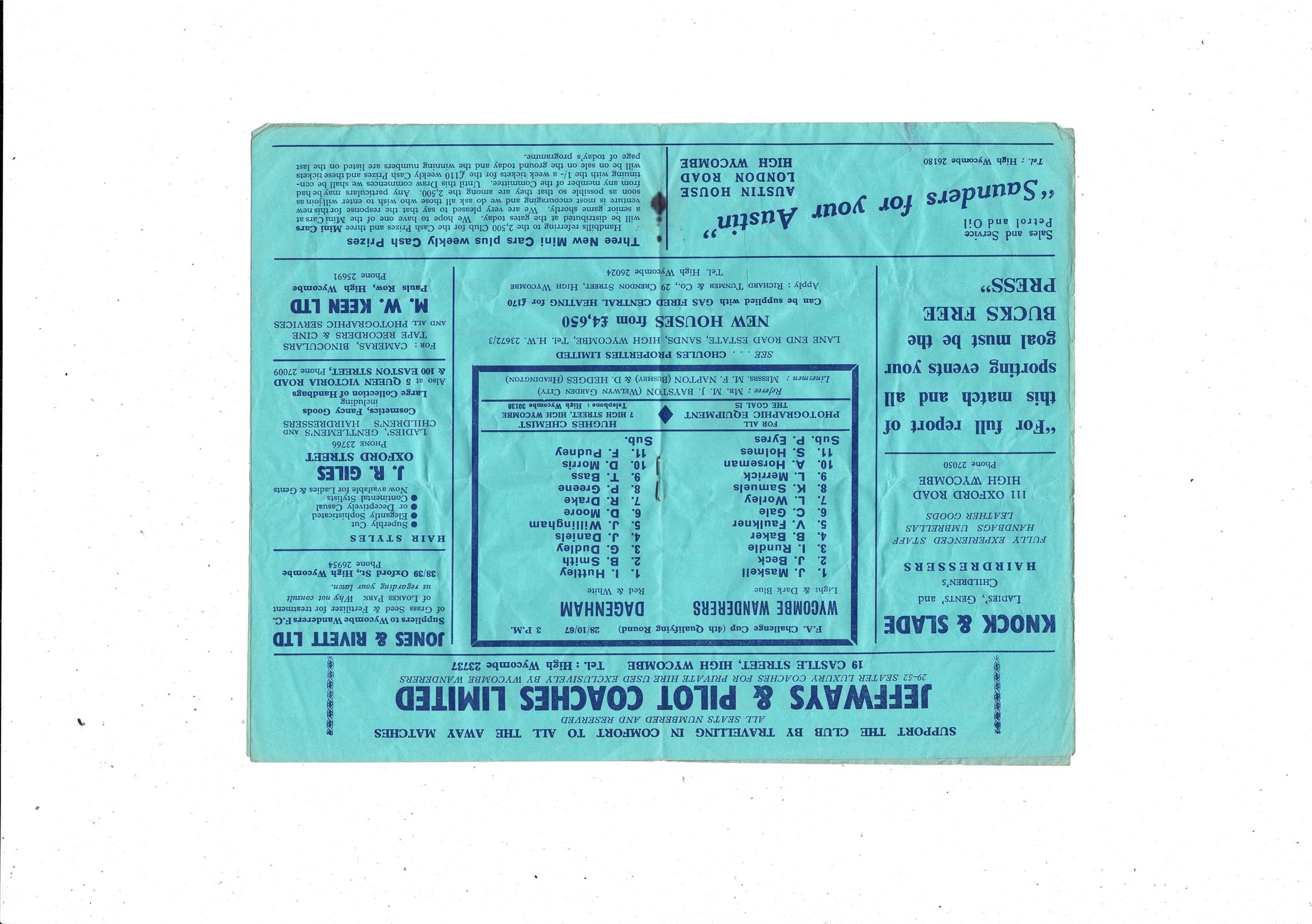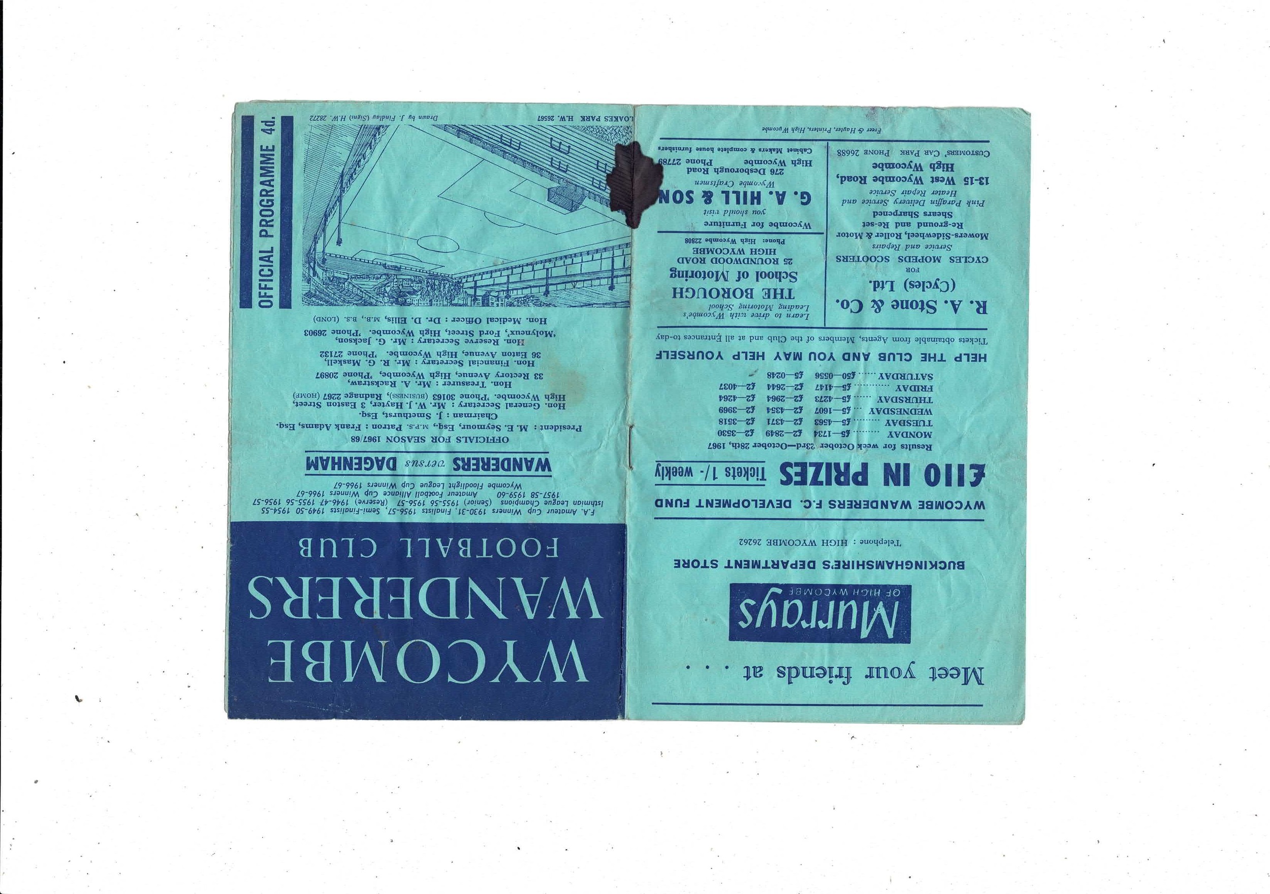 Wycombe Wanderers v Dagenham FA Cup Football Programme 1963/64