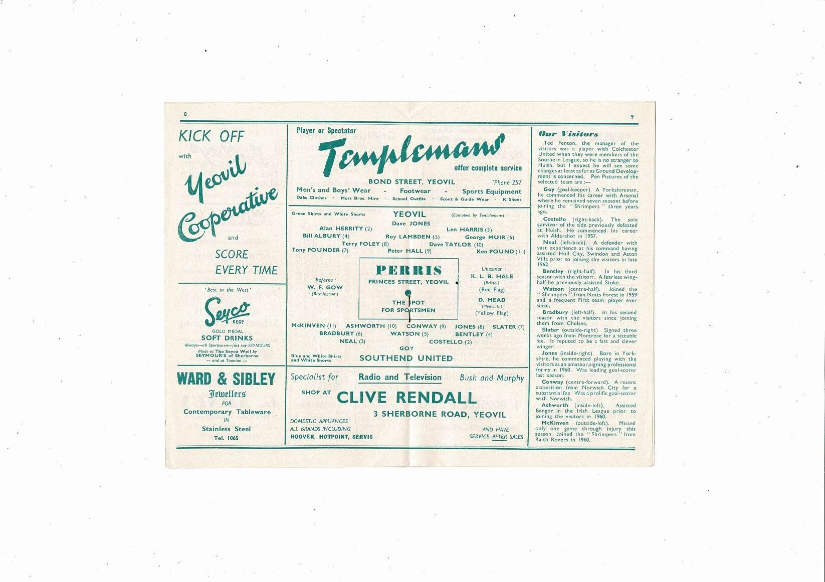 Yeovil Town v Southend United FA Cup Football Programme 1963/64
