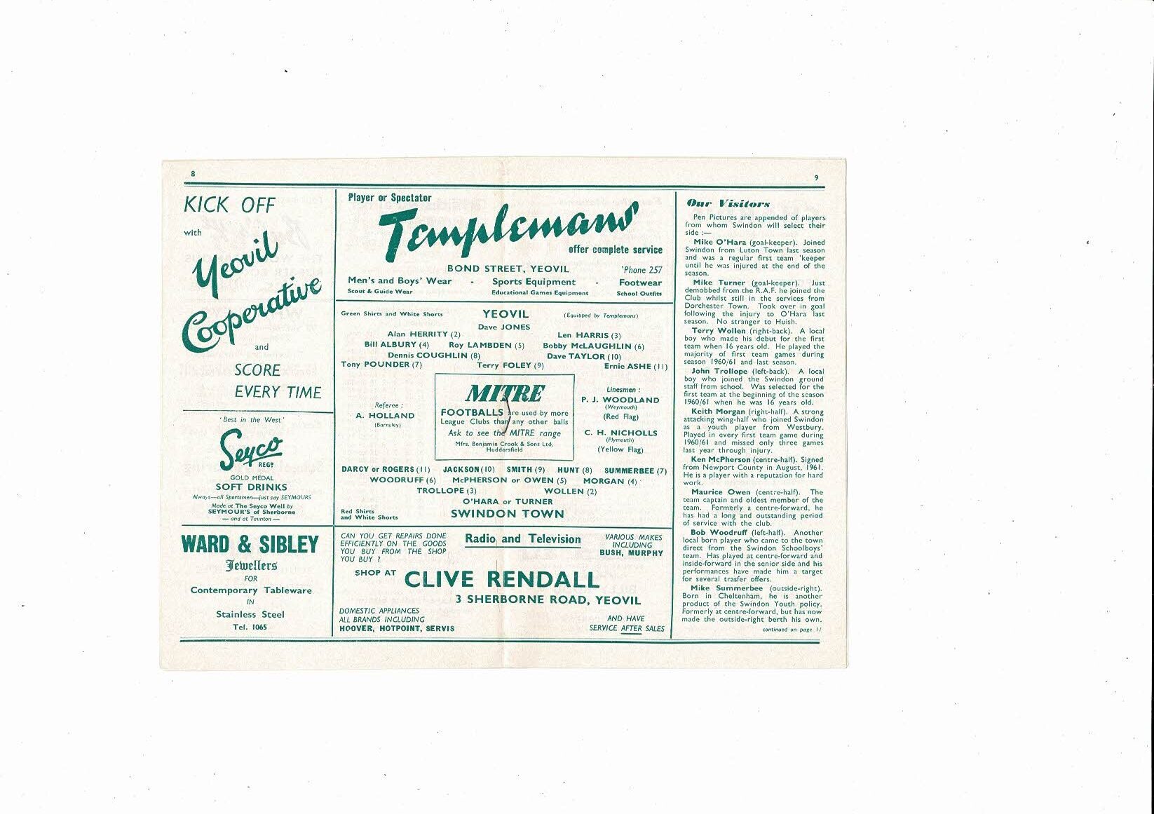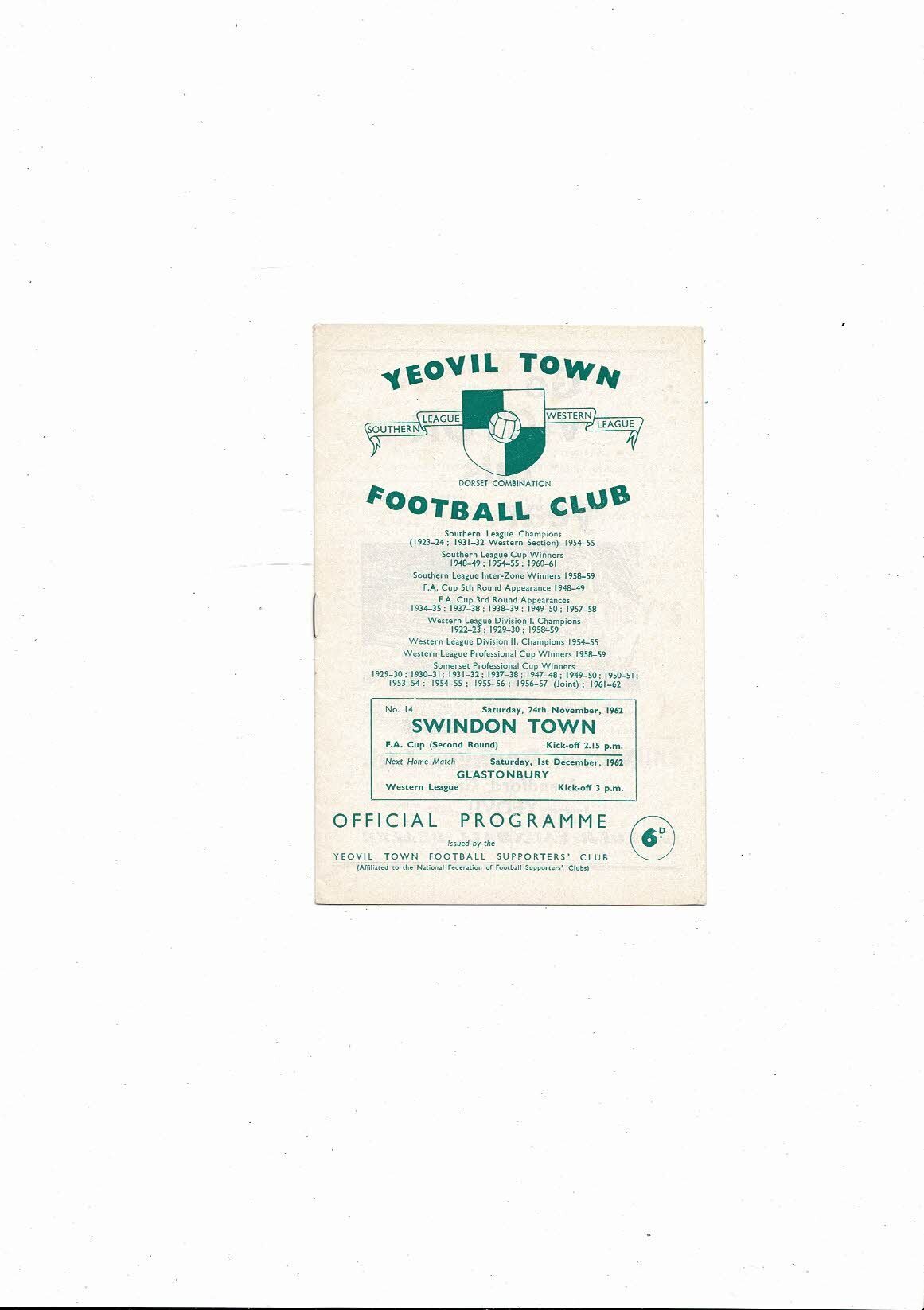 Yeovil Town v Swindon Town FA Cup Football Programme 1962/63