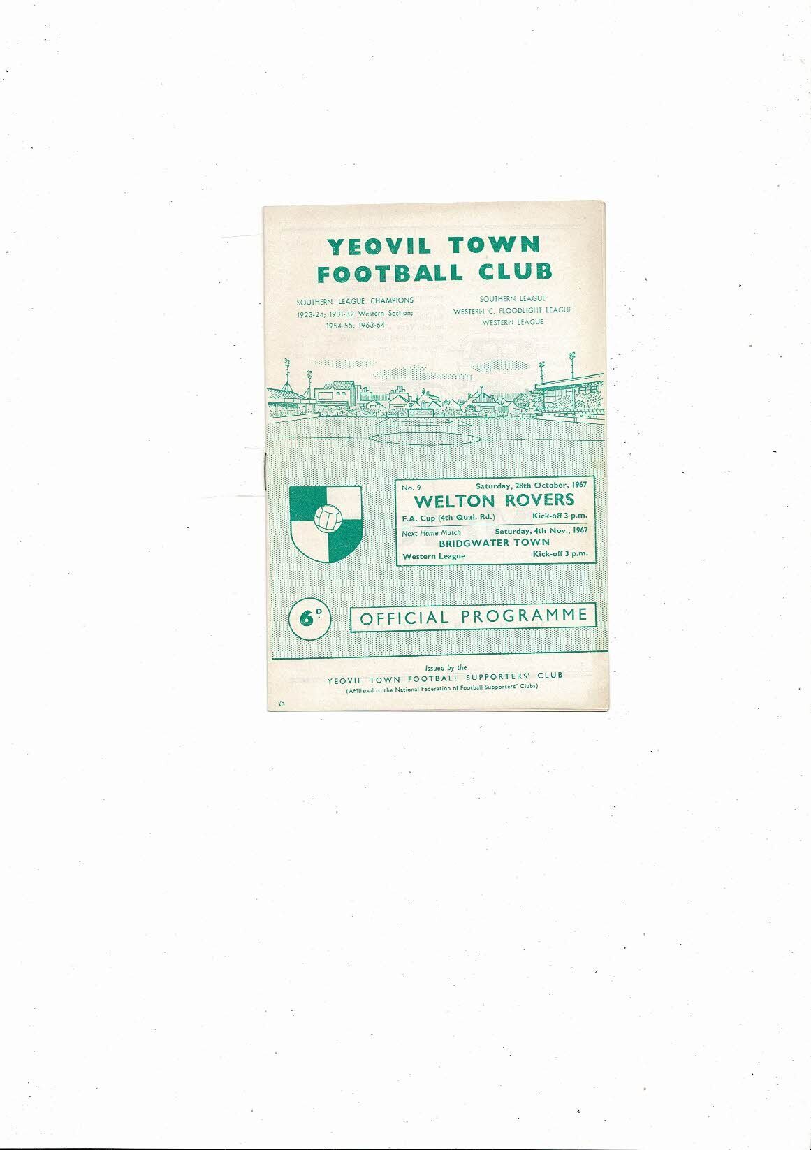 Yeovil Town v Welton Rovers FA Cup Football Programme 1967/68