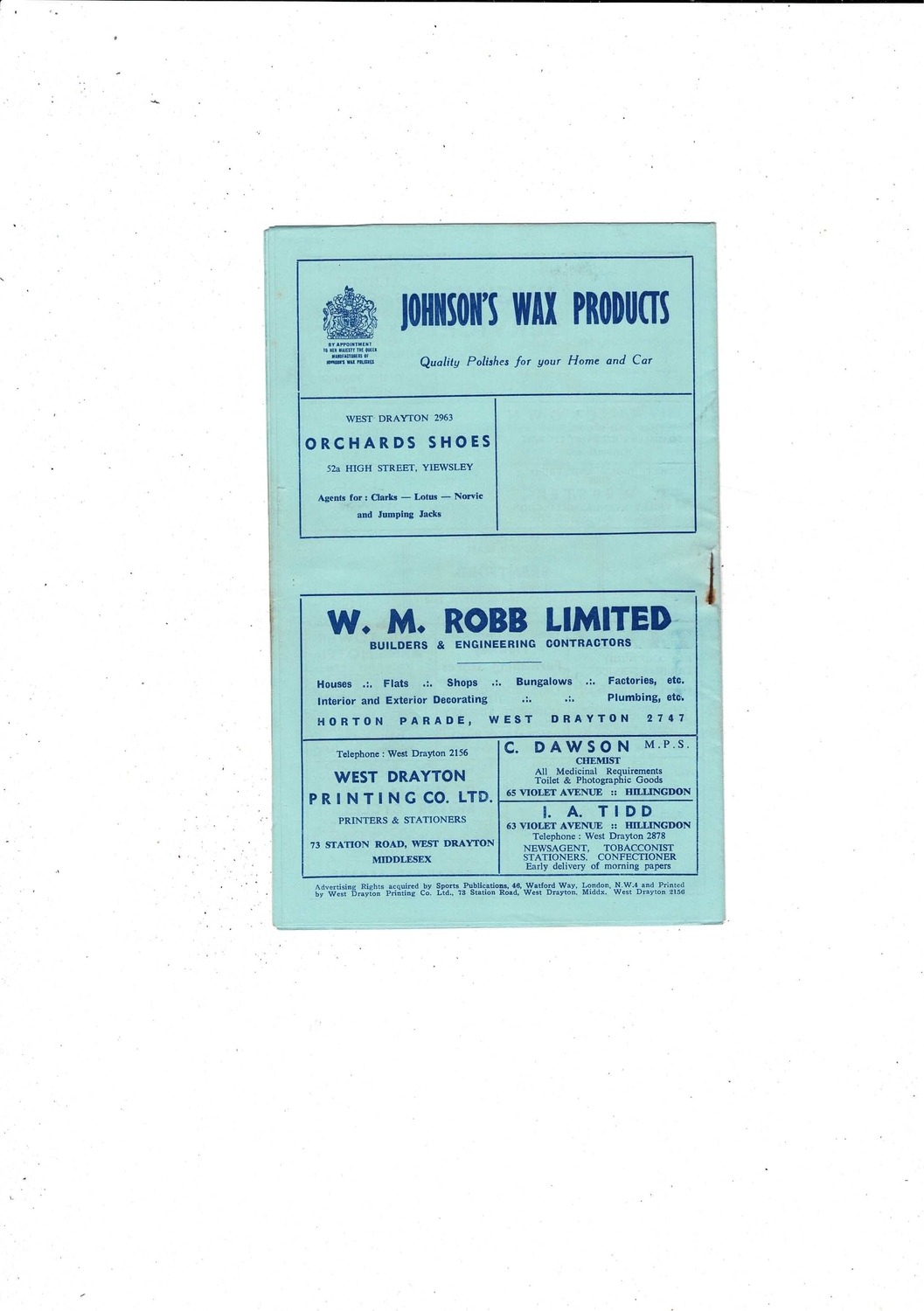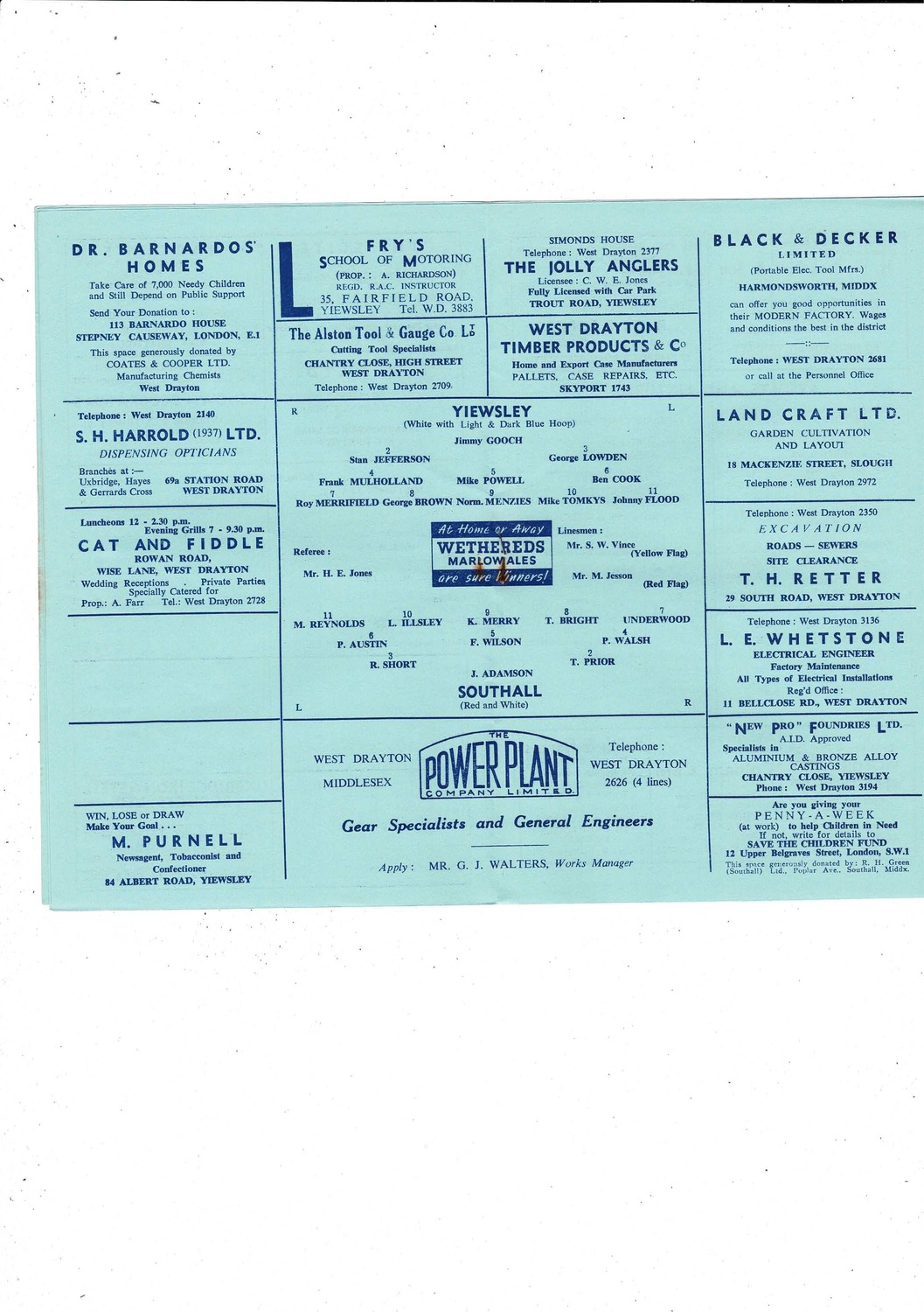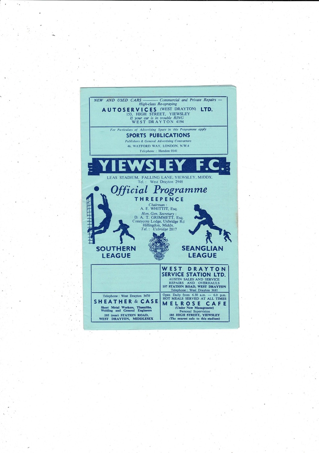 Yiewsley v Southall FA Cup Replay Football Programme 1959/60