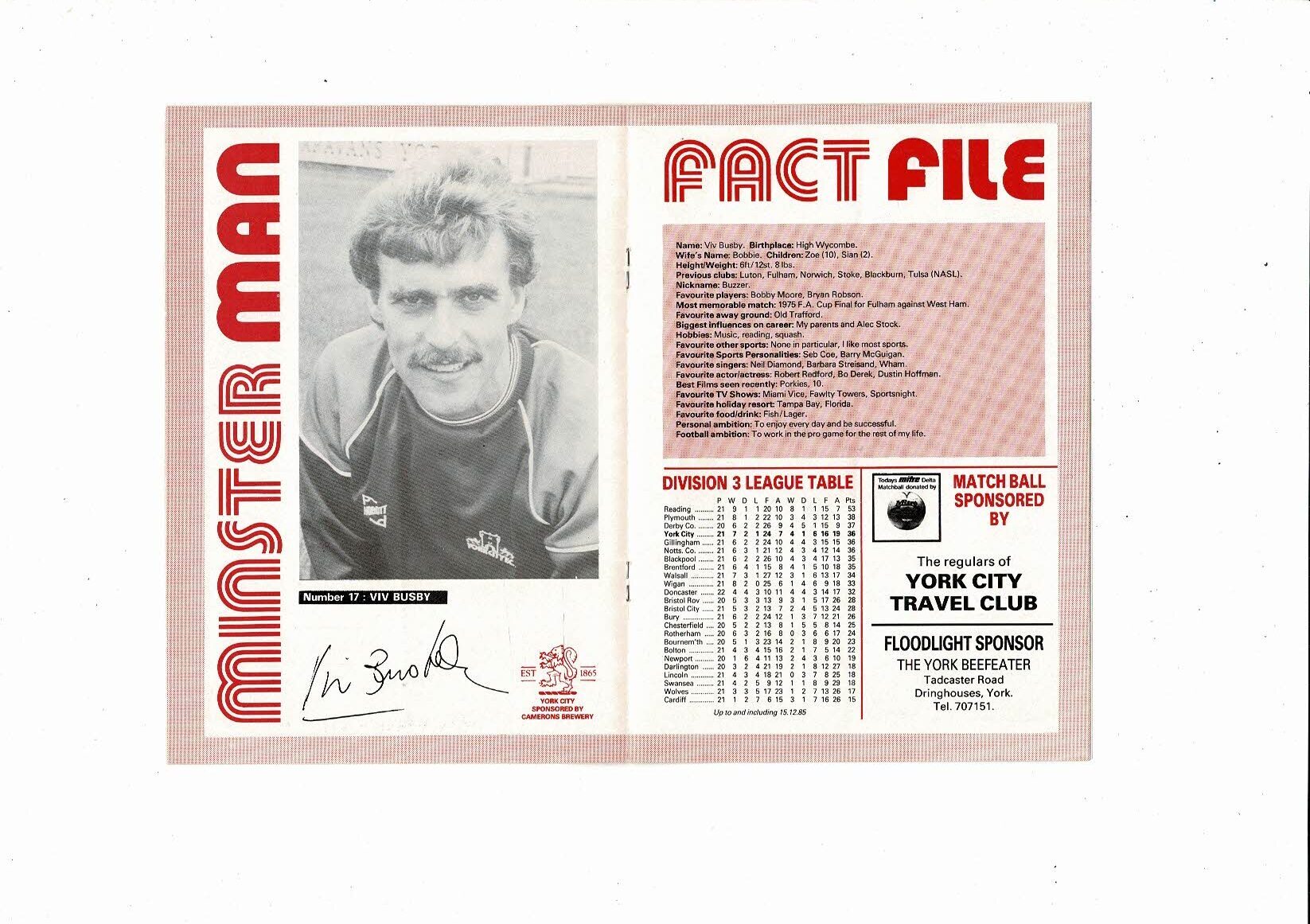 York City v Wycombe Wanderers FA Cup Football Programme 1985/86