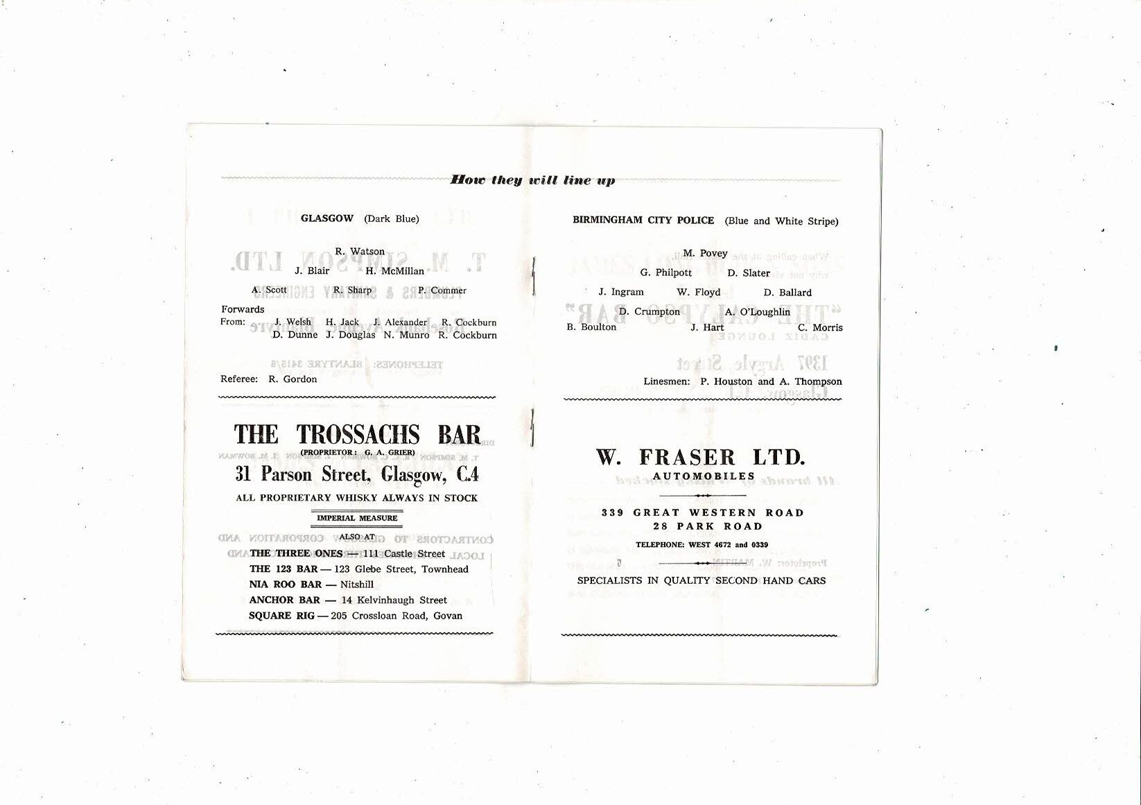 Glasgow Police v Birmingham Police British Police Cup Final Programme 1966/67