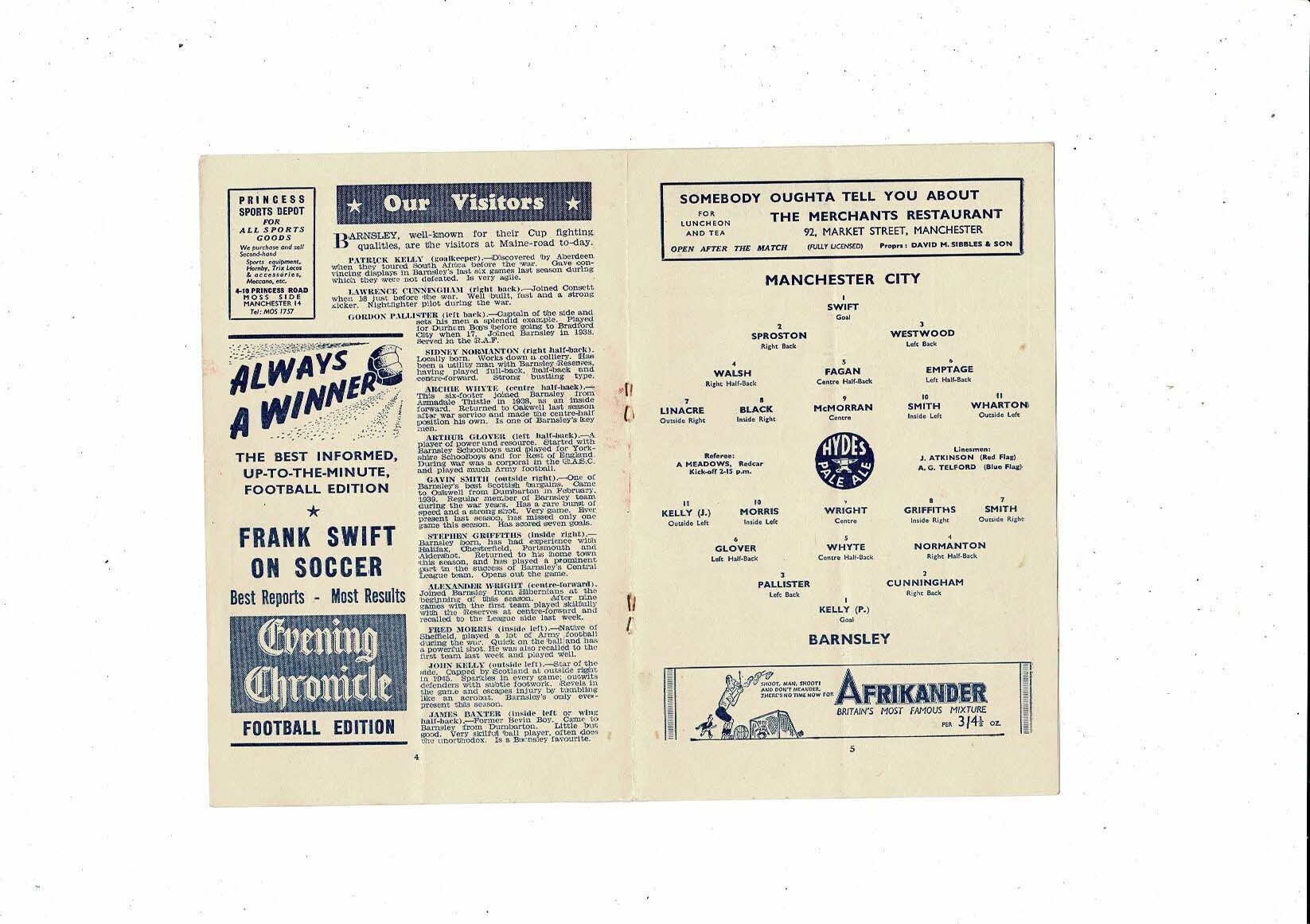 1947/48 Manchester City v Barnsley FA Cup Football Programme