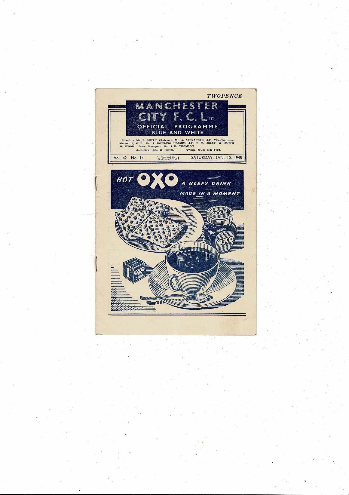 This Original Football Programme is creased also has fold with rusty staples & some staining. No handwriting. Please see scans.