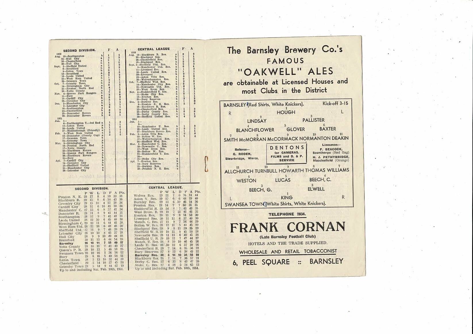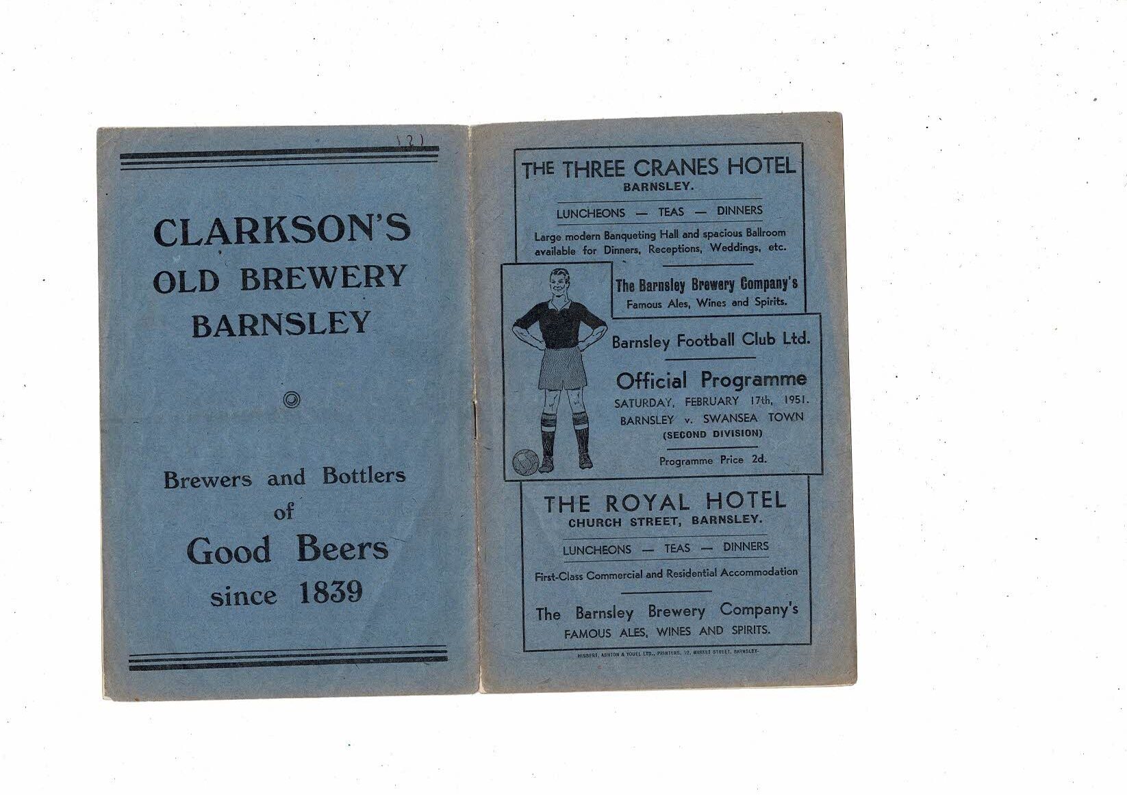 1950/51 Barnsley v Swansea Town Football Programme