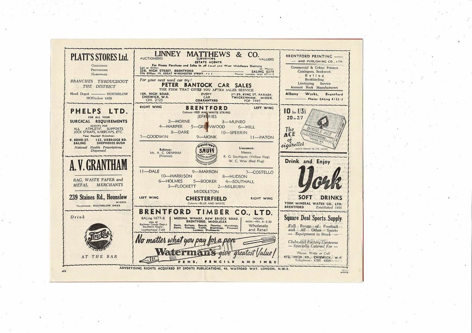 1950/51 Brentford v Chesterfield Football Programme
