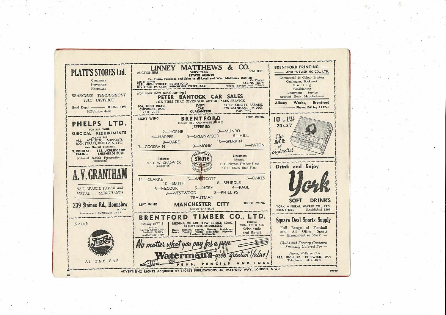 1950/51 Brentford v Manchester City Football Programme